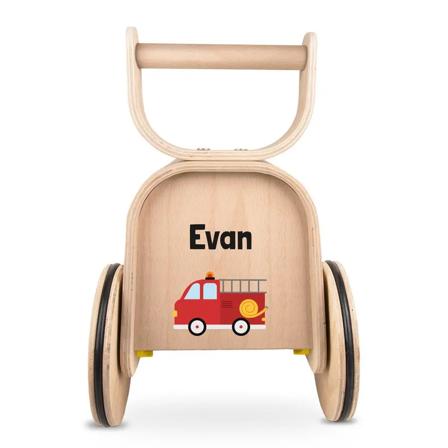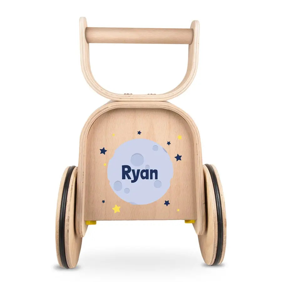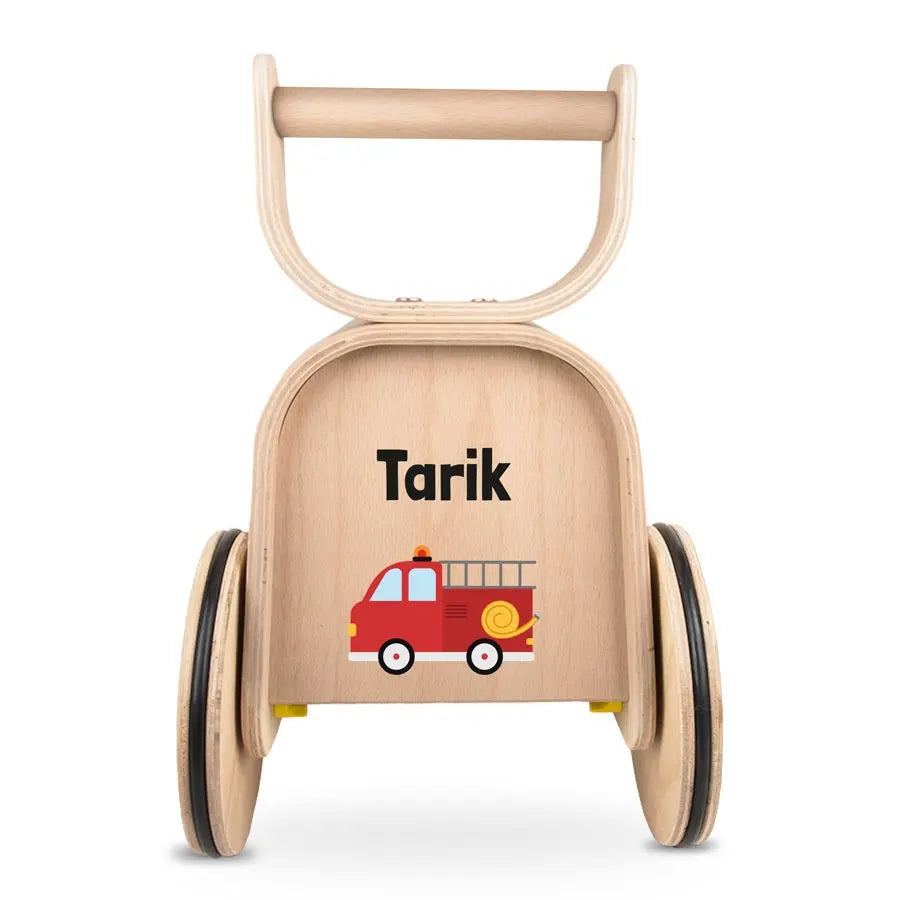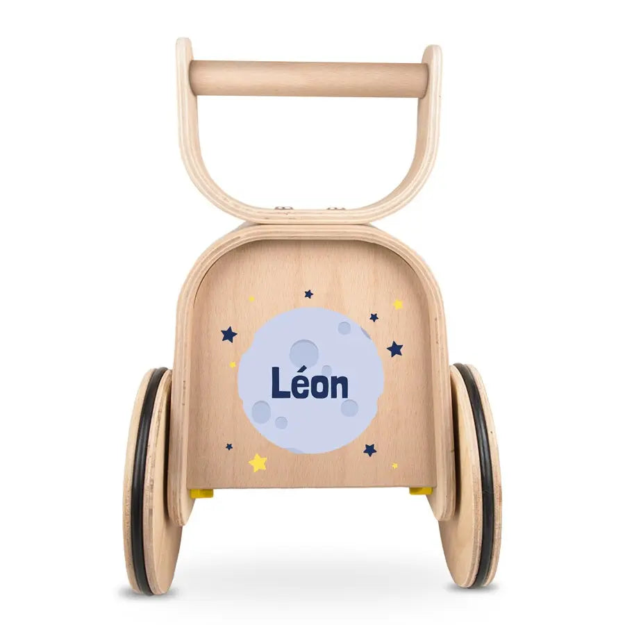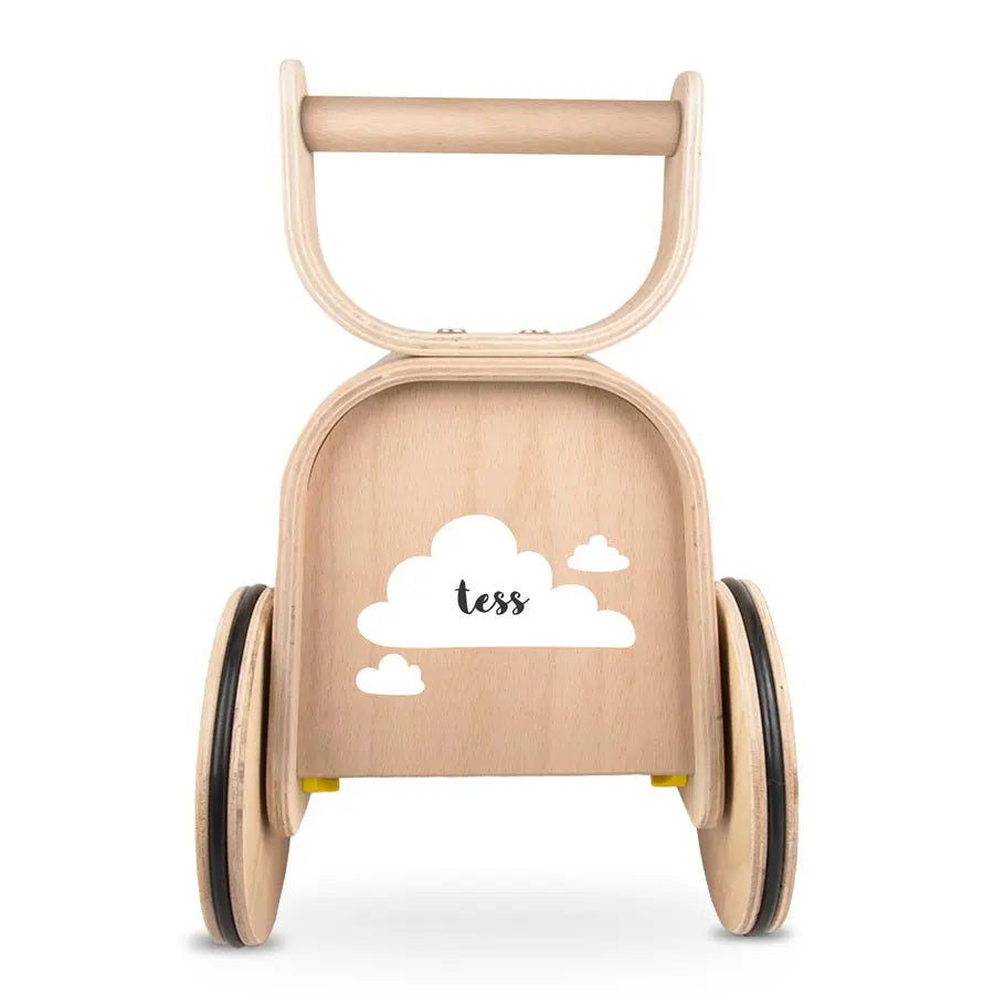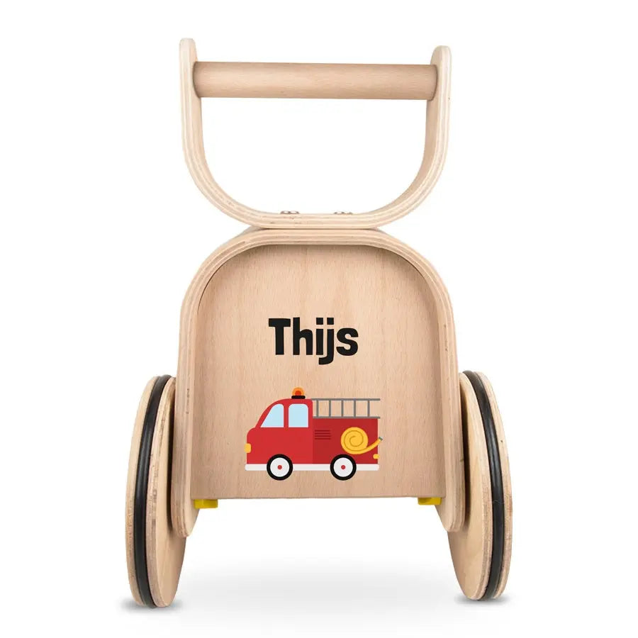 Nauka chodzenia będzie jeszcze przyjemniejsza z tym drewnianym samochodzikiem do pchania. Może służyć jako zabawka do pchania, samochód wyścigowy i schowek na zabawki!Więcej informacji o drewnianym samochodziku do pchania z nadrukiem: Wymiary: 49 x 21 cm Wysokość siedziska: 21 cm Waga: ± 4 kg Rodzaj drewna: superwytrzymały, bezdrewniany multipleks brzozowy Szczegóły: wysokiej jakości drewno brzozowe Wiek: 10 miesięcy + Rodzaj personalizacji: imieniem Miejsce personalizacji: z przodu Sposób personalizacji: wysokiej jakości laminowana folia winylowa Dodatkowo: 3 zabawki w 1; jedź, pchaj i przechowuj! Warto wiedzieć: Koła posiadają gumową wkładkę, dzięki czemu Twój maluch może ścigać się w domu bez nadmiernego hałasu. Możesz również regulować maksymalną prędkość za pomocą dołączonych klipsów.