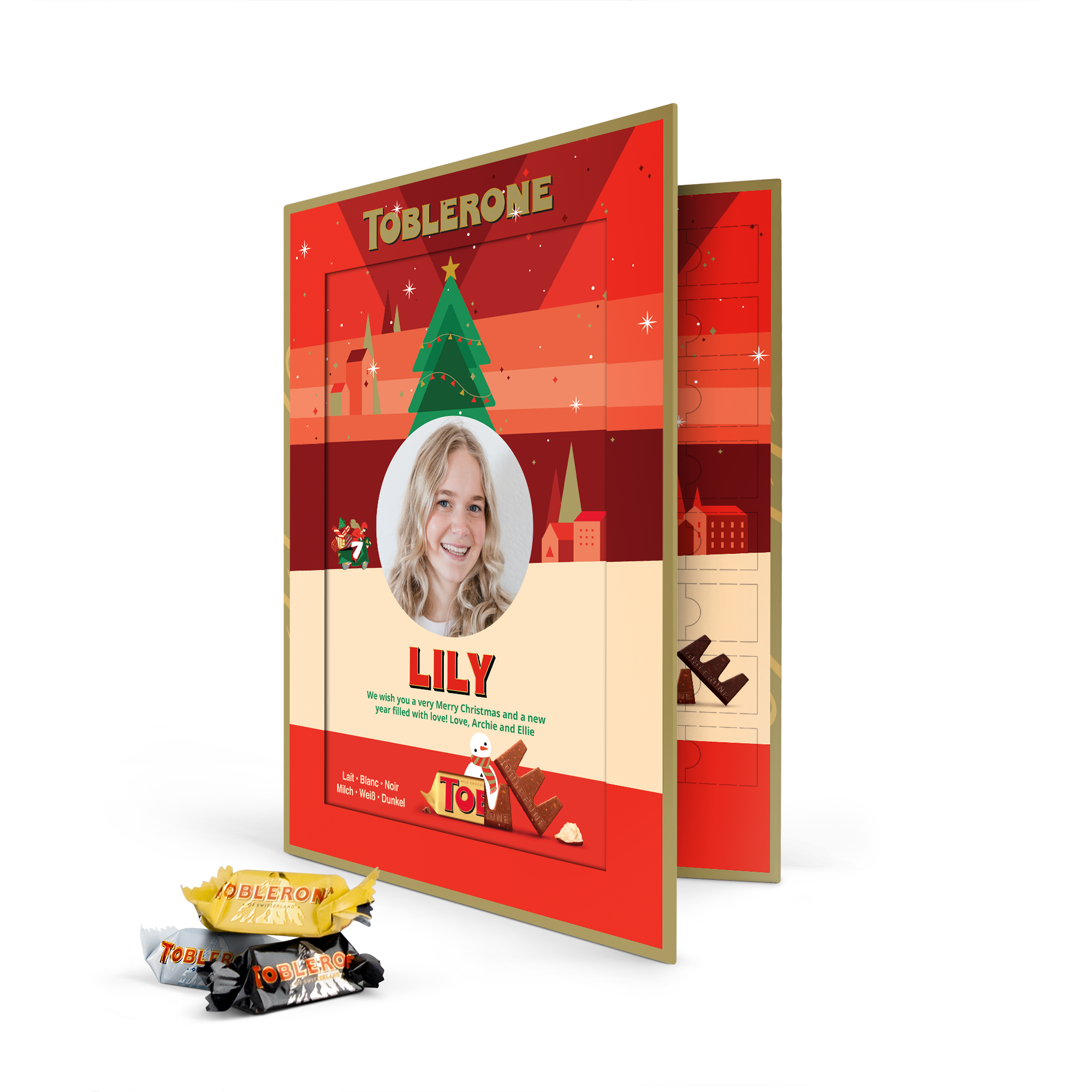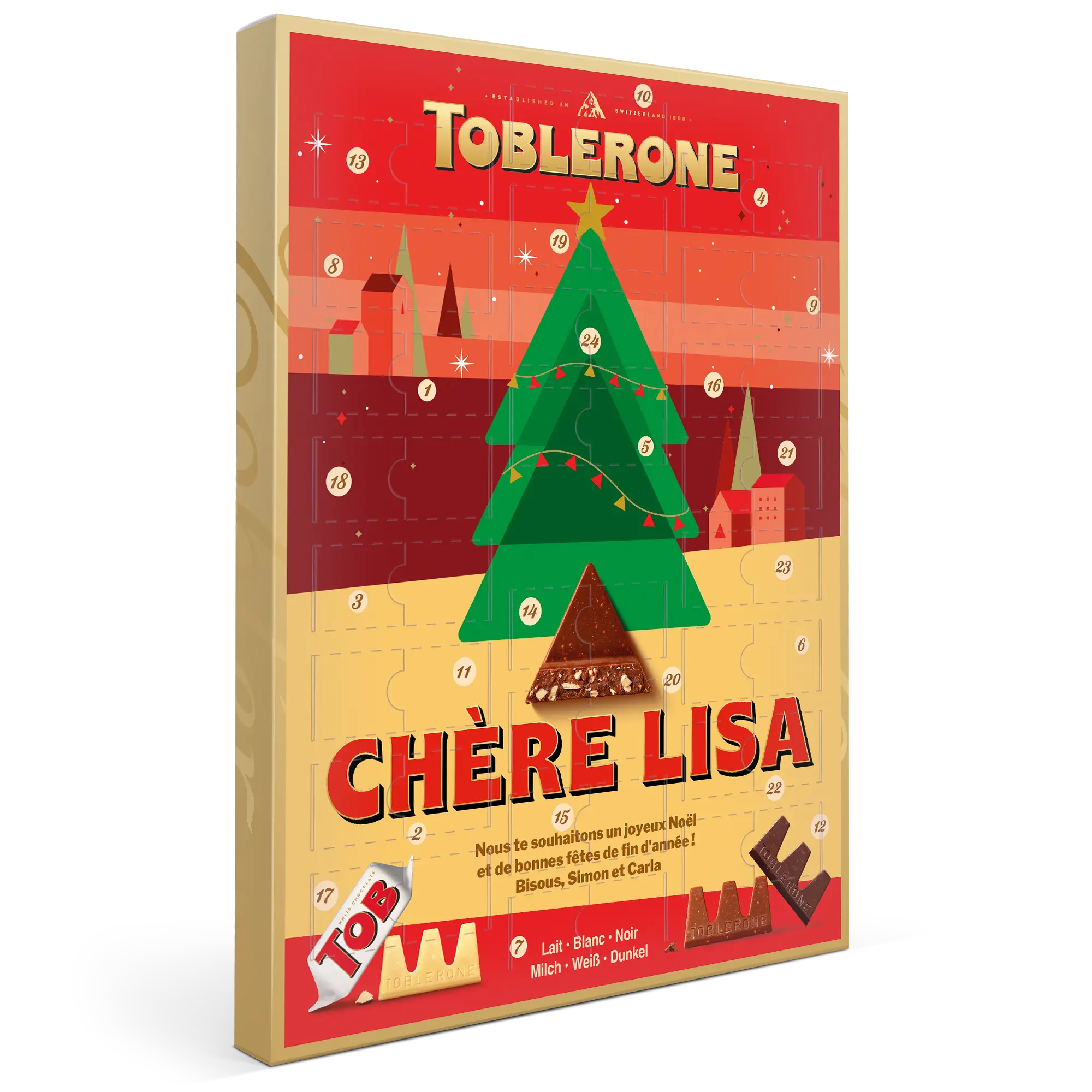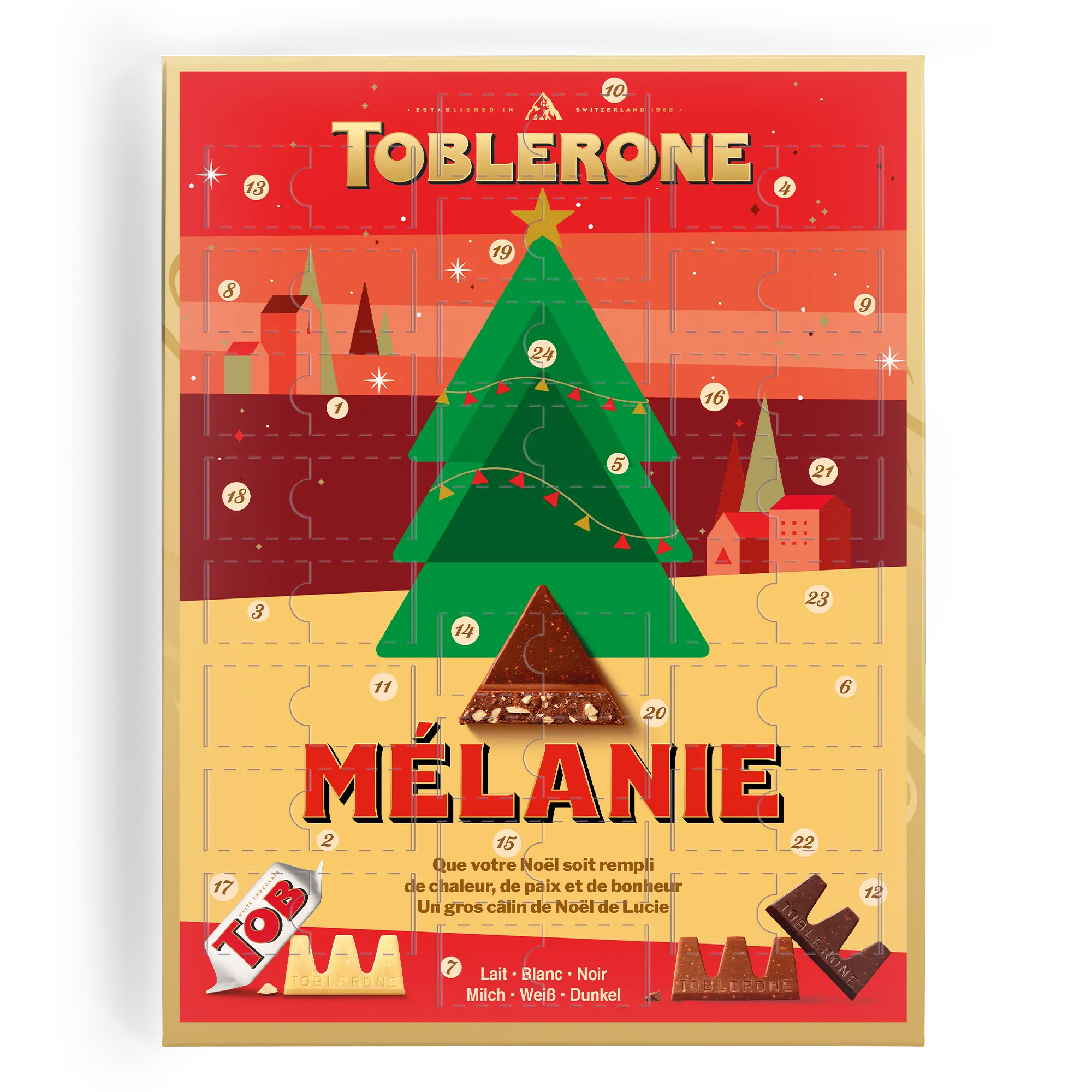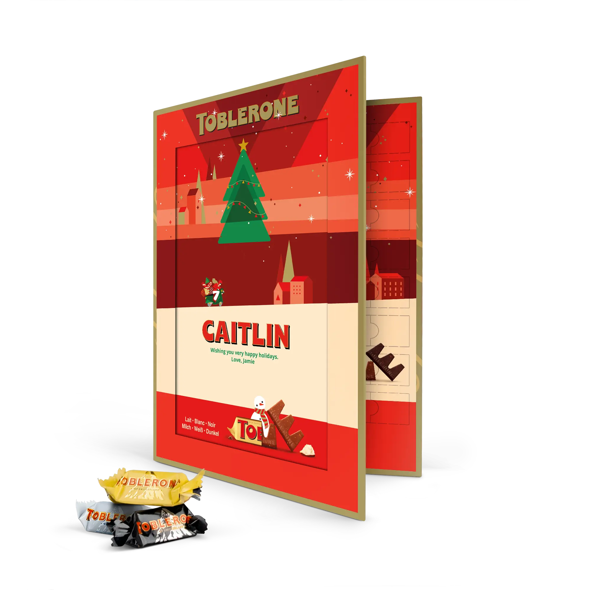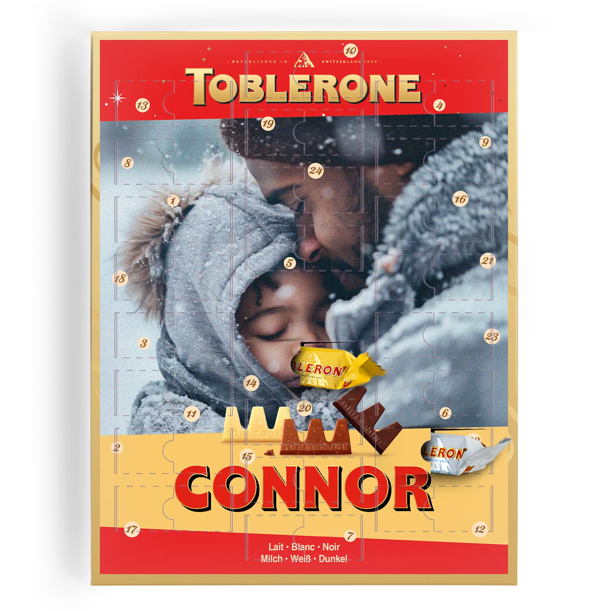 Dla tych, którzy cenią sobie osobisty charakter, Kalendarz Adwentowy Toblerone pozwala odliczać dni do Bożego Narodzenia z 24 pysznymi czekoladkami. Dodaj imię, zdjęcie lub logo, aby stworzyć naprawdę wyjątkowy prezent.