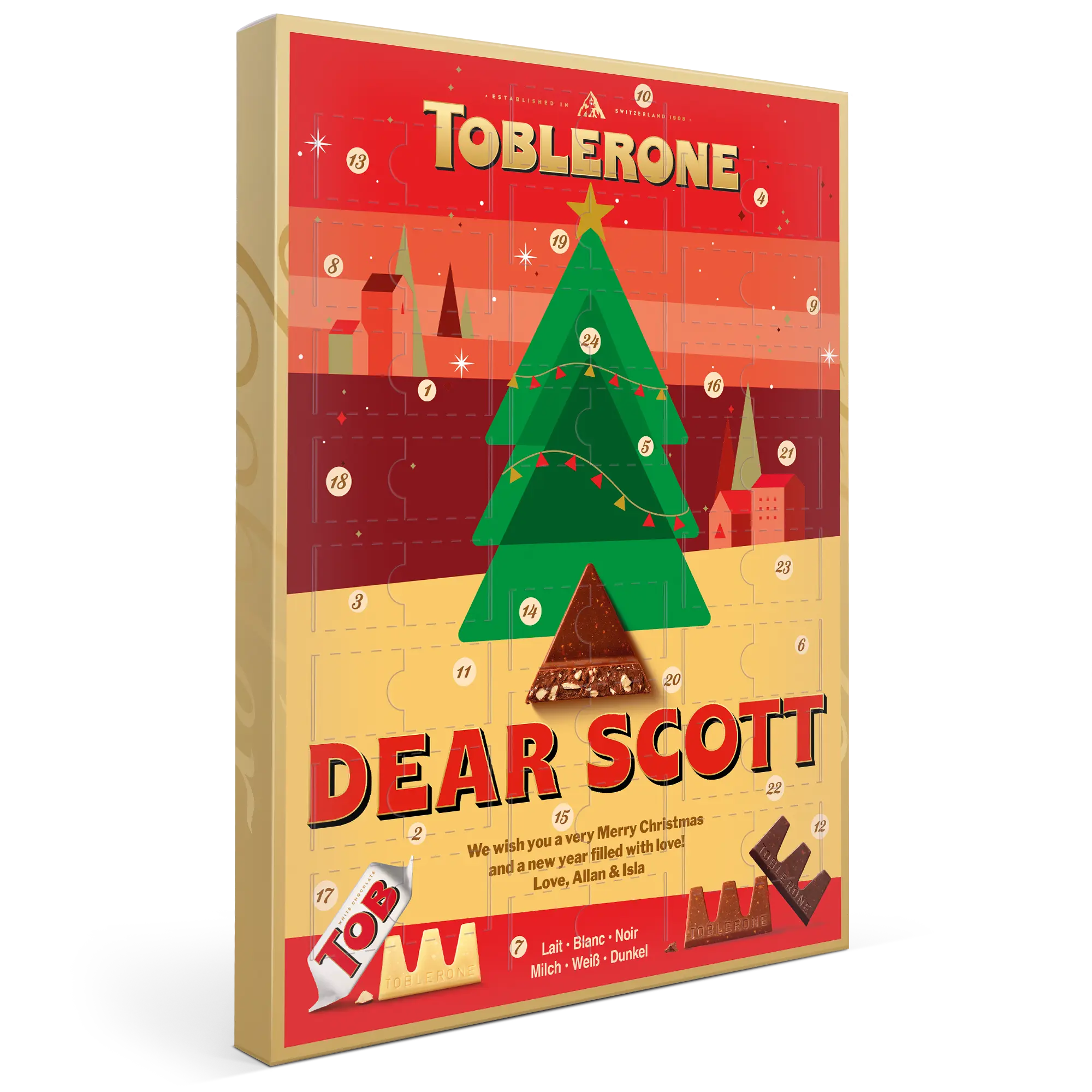 Personalizowany kalendarz adventowy Toblerone dla świątecznych rodzin