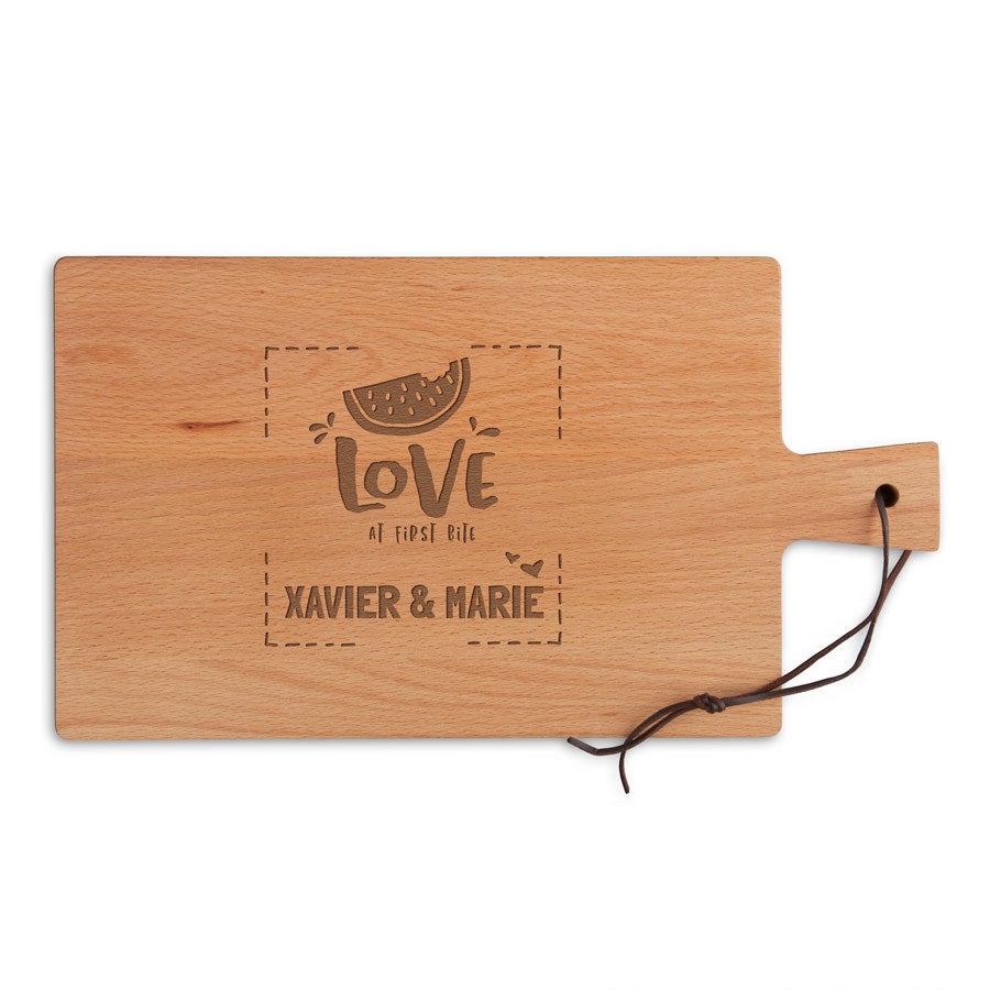 Stwórz wyjątkową deskę do serwowania z drewna bukowego. Osobisty prezent z imieniem, tekstem i wzorem. W różnych formatach!