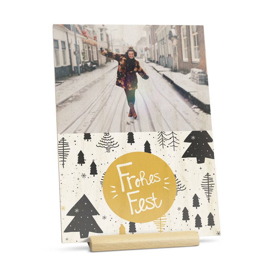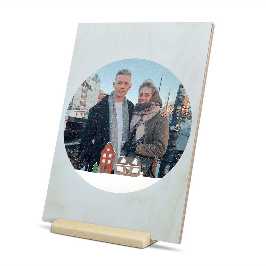 Kartka świąteczna na drewnie, zaprojektowana specjalnie przez Ciebie. Pełnokolorowy nadruk na supermocnej sklejce, w zestawie wygodny stojak. Wesołych Świąt!