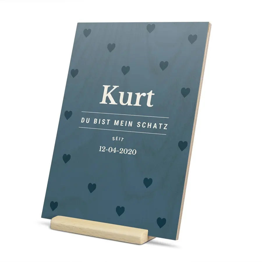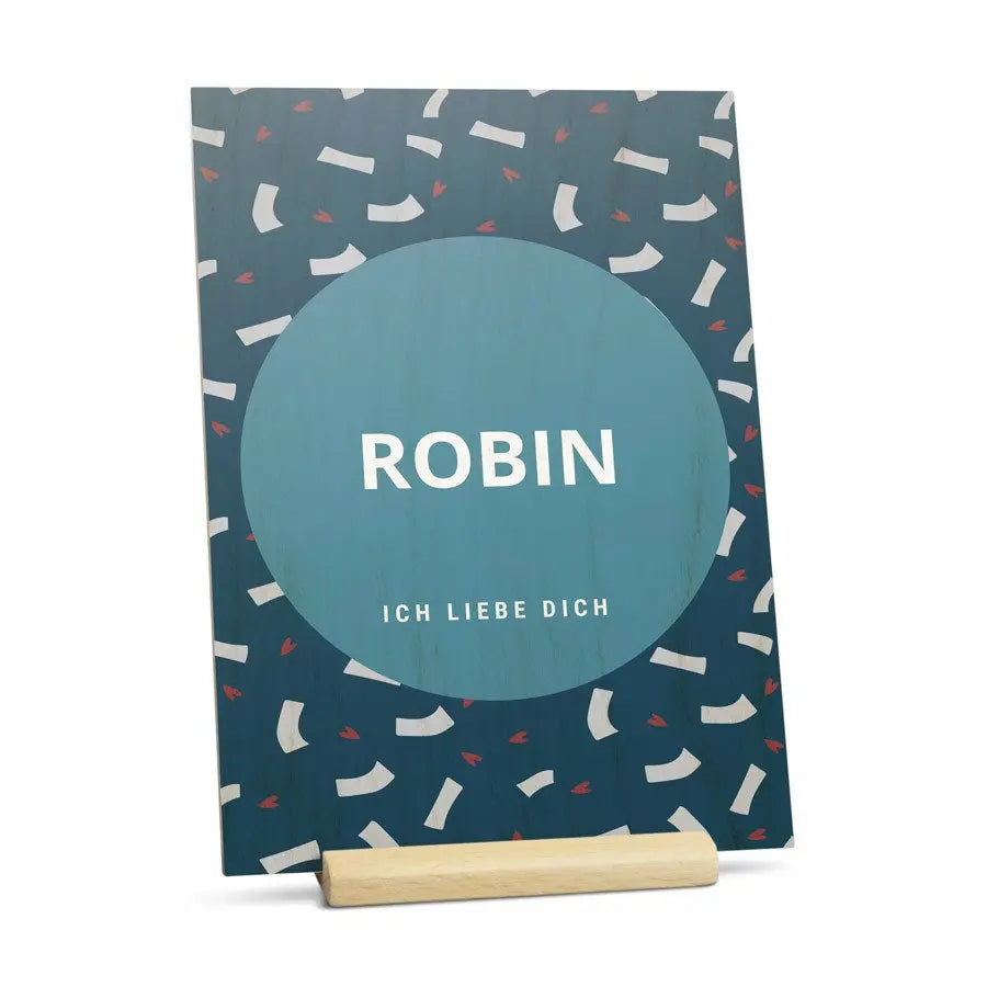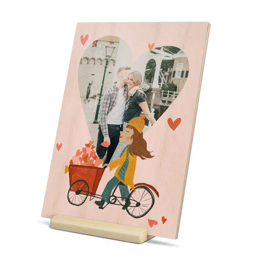 Kartka walentynkowa na drewnie, zaprojektowana specjalnie przez Ciebie. Pełnokolorowy nadruk na supermocnej sklejce, w zestawie wygodny stojak. Wspaniałych Walentynek!Więcej informacji o drewnianej kartce walentynkowej: Materiał: drewno bez drzazg, z naturalnym wykończeniem Rozmiar: 12 x 17 cm Druk: perfekcyjny, pełnokolorowy nadruk UV Personalizacja: imieniem, zdjęciem i/lub tekstem Dodatkowo: w zestawie praktyczny drewniany stojak Zobacz wszystkie prezenty walentynkowe >