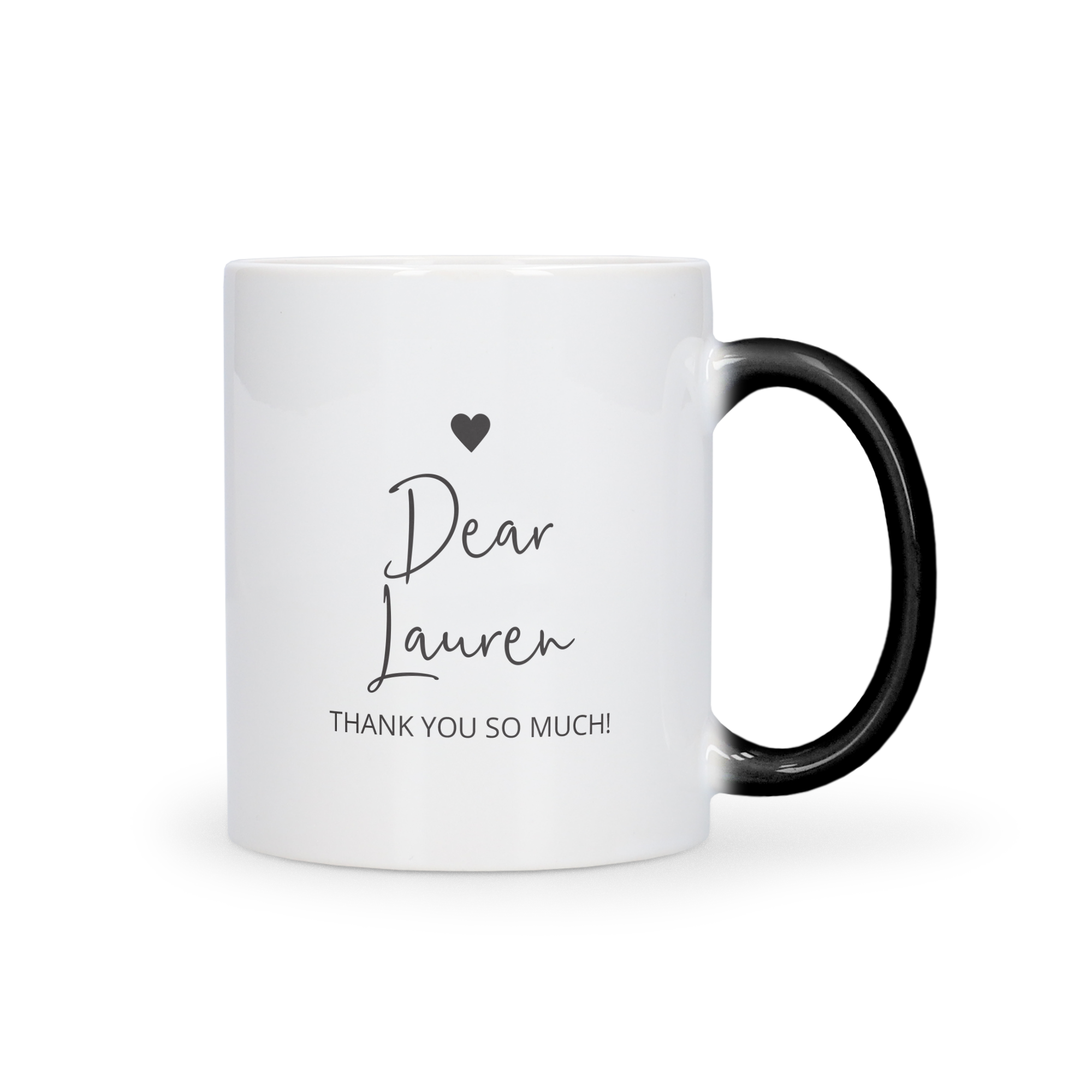- Uwaga: Kubek będzie całkowicie czarny w momencie dostawy. Twój wzór będzie widoczny dopiero po napełnieniu kubka gorącym napojem. Obraz będzie zawsze lekko widoczny przez magiczną warstwę. Kubek nie nadaje się do mycia w zmywarce ani podgrzewania w kuchence mikrofalowej!