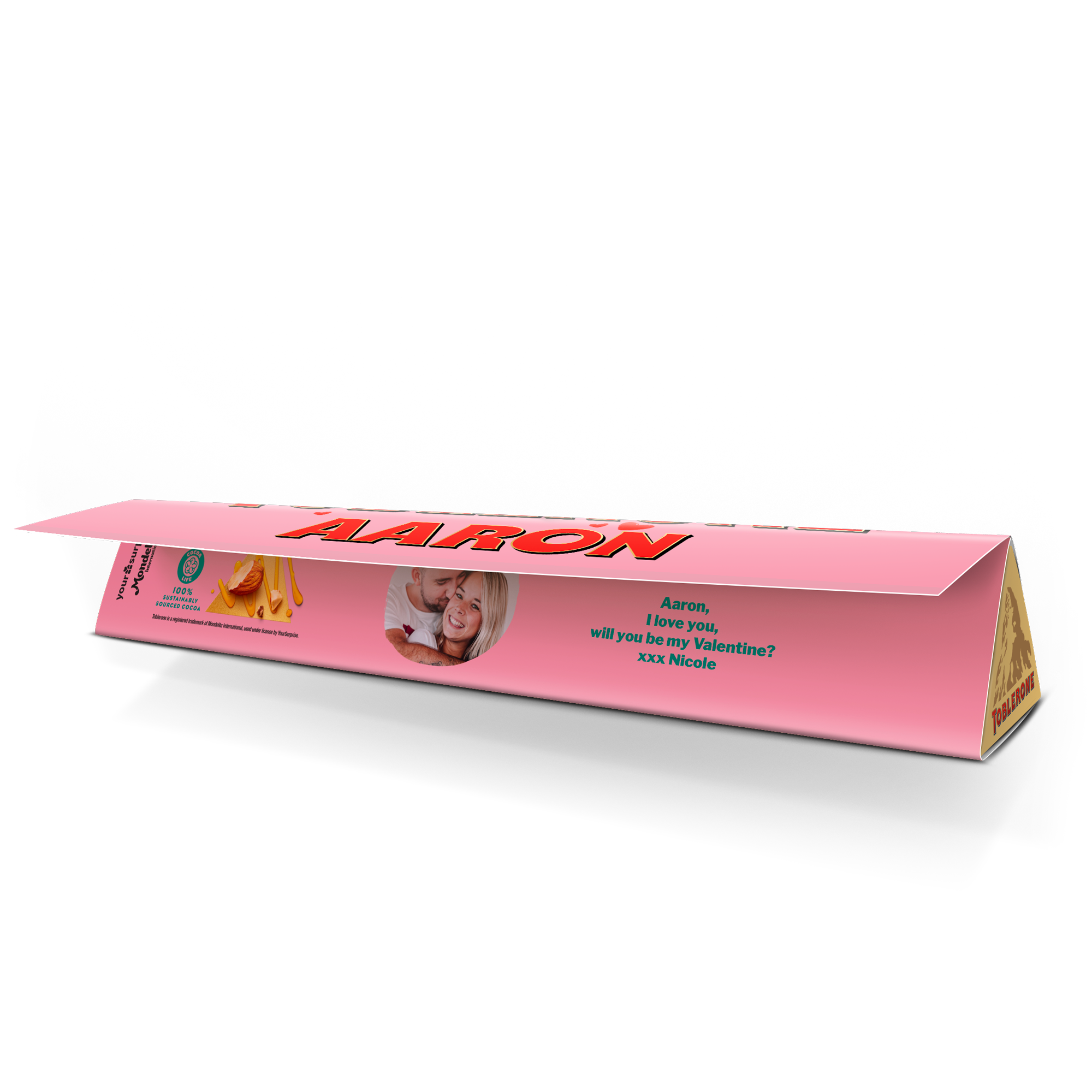 Czy Twoja (sekretna) sympatia uwielbia czekoladki Toblerone? W takim razie ten spersonalizowany batonik to najlepszy prezent w życiu. Unikalny z imieniem, zdjęciem i wiadomością!