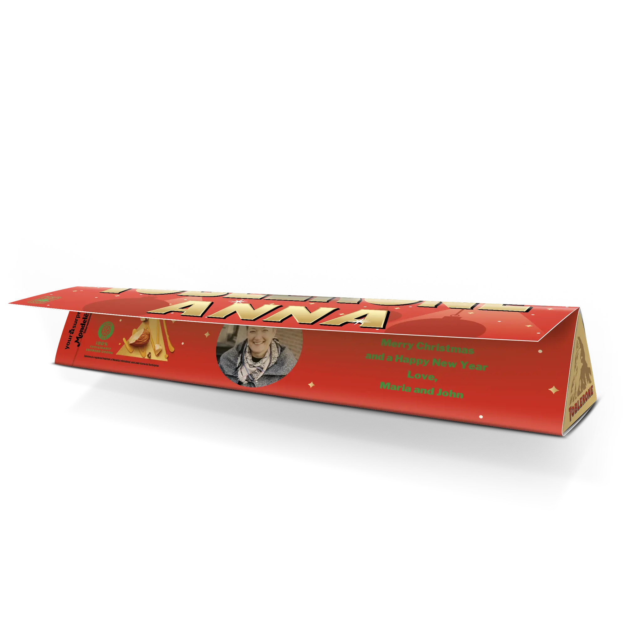 Zaskocz czekoholików w swoim życiu spersonalizowaną, świąteczną tabliczką Toblerone z imieniem, zdjęciem i wybranym napisem!
