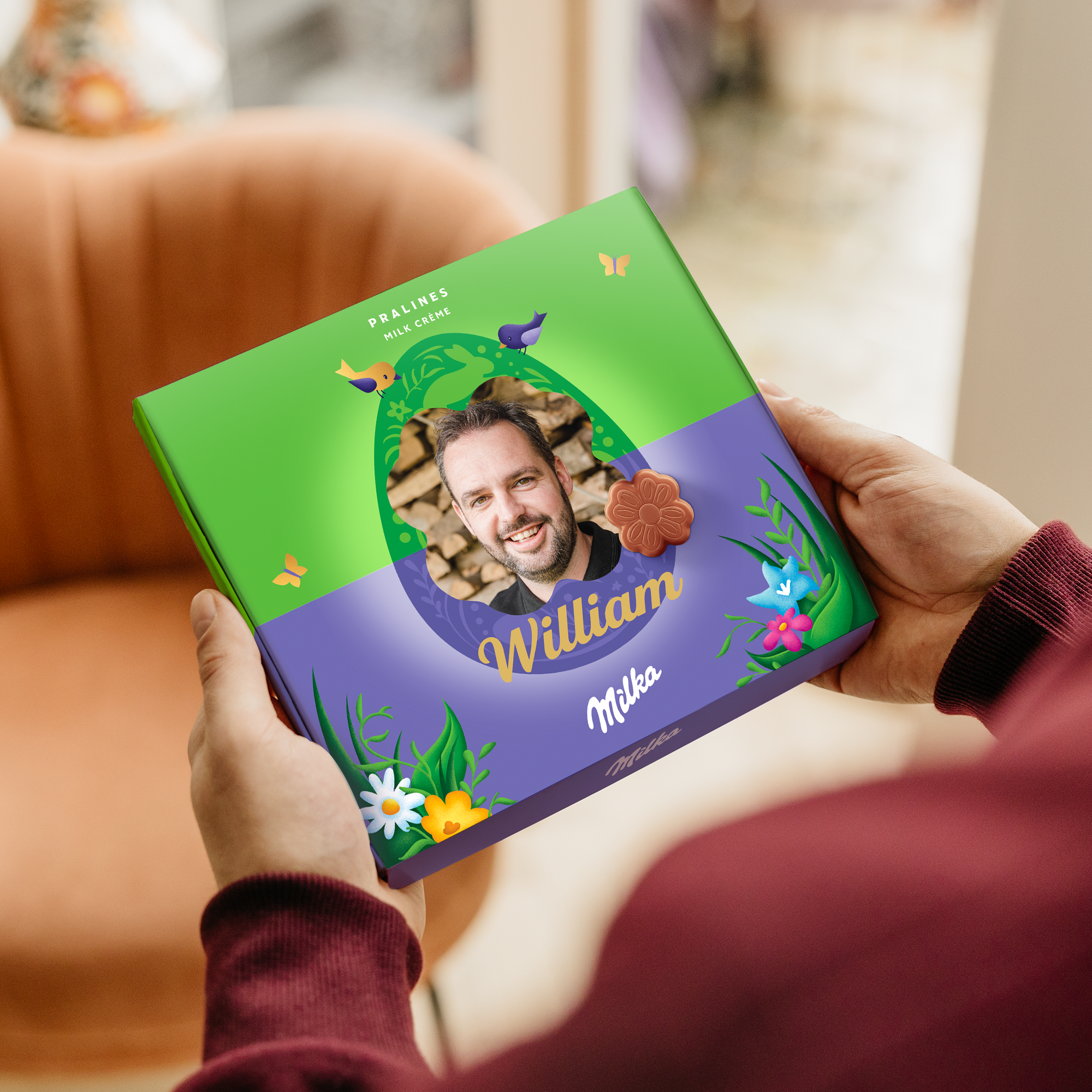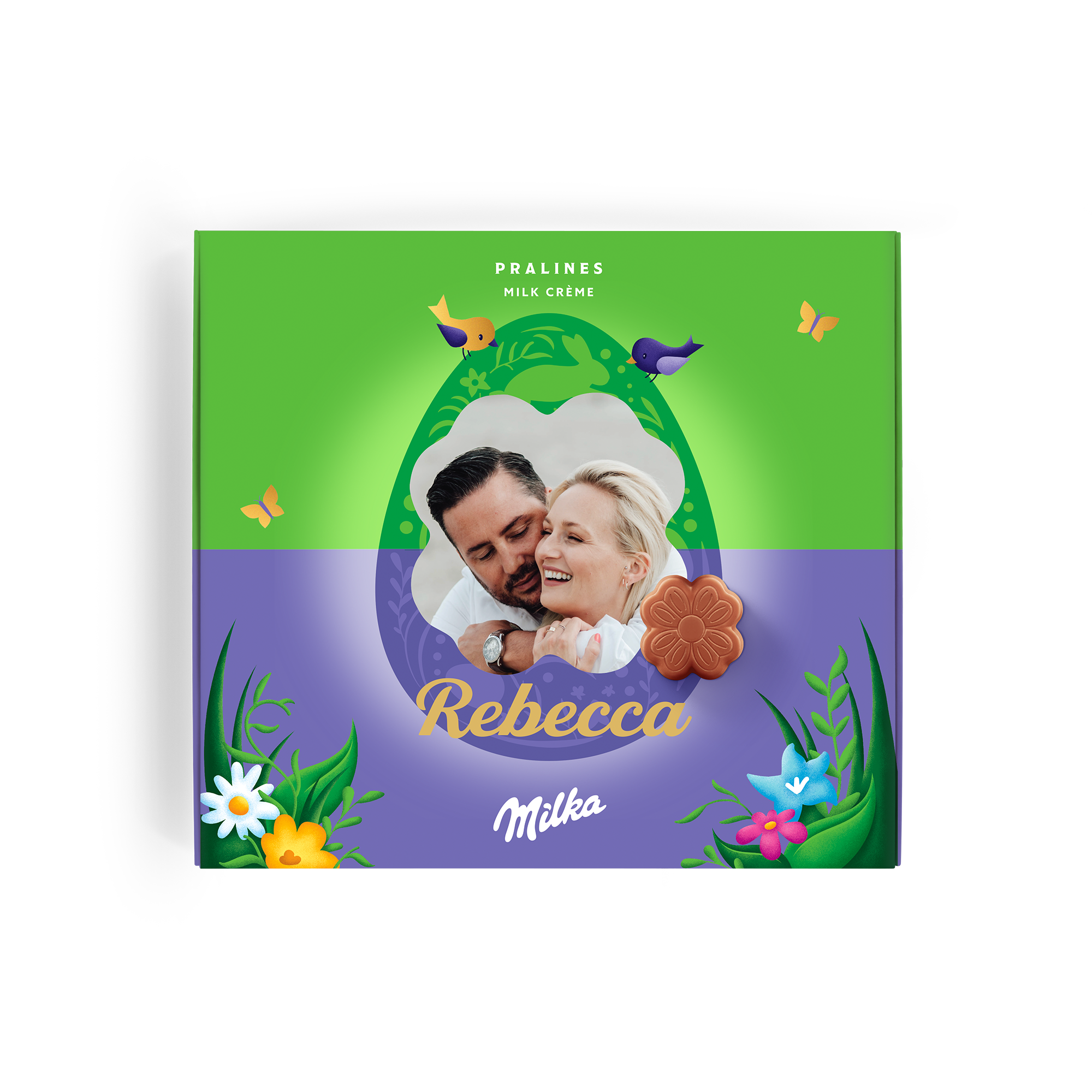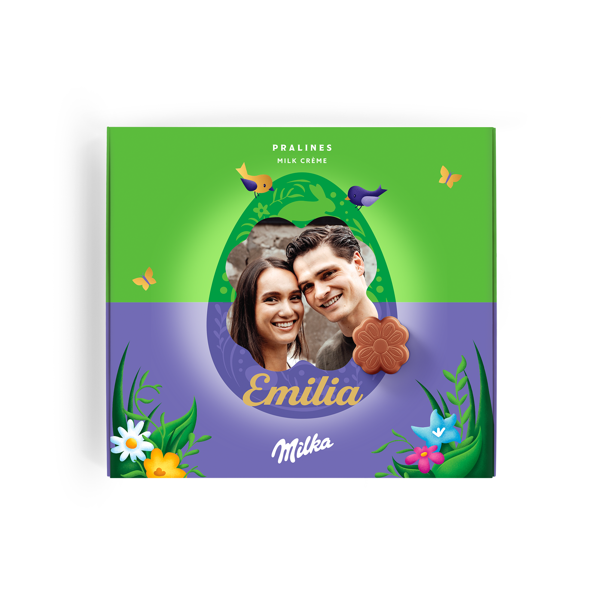 Wyjątkowe pudełko czekoladek Milka na Wielkanoc. Pyszne praliny z imieniem, zdjęciem i osobistą wiadomością. Zaskocz swoich bliskich!