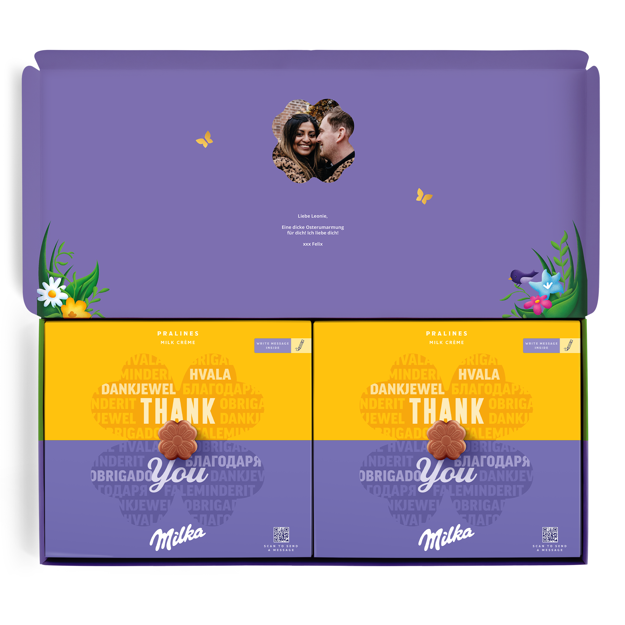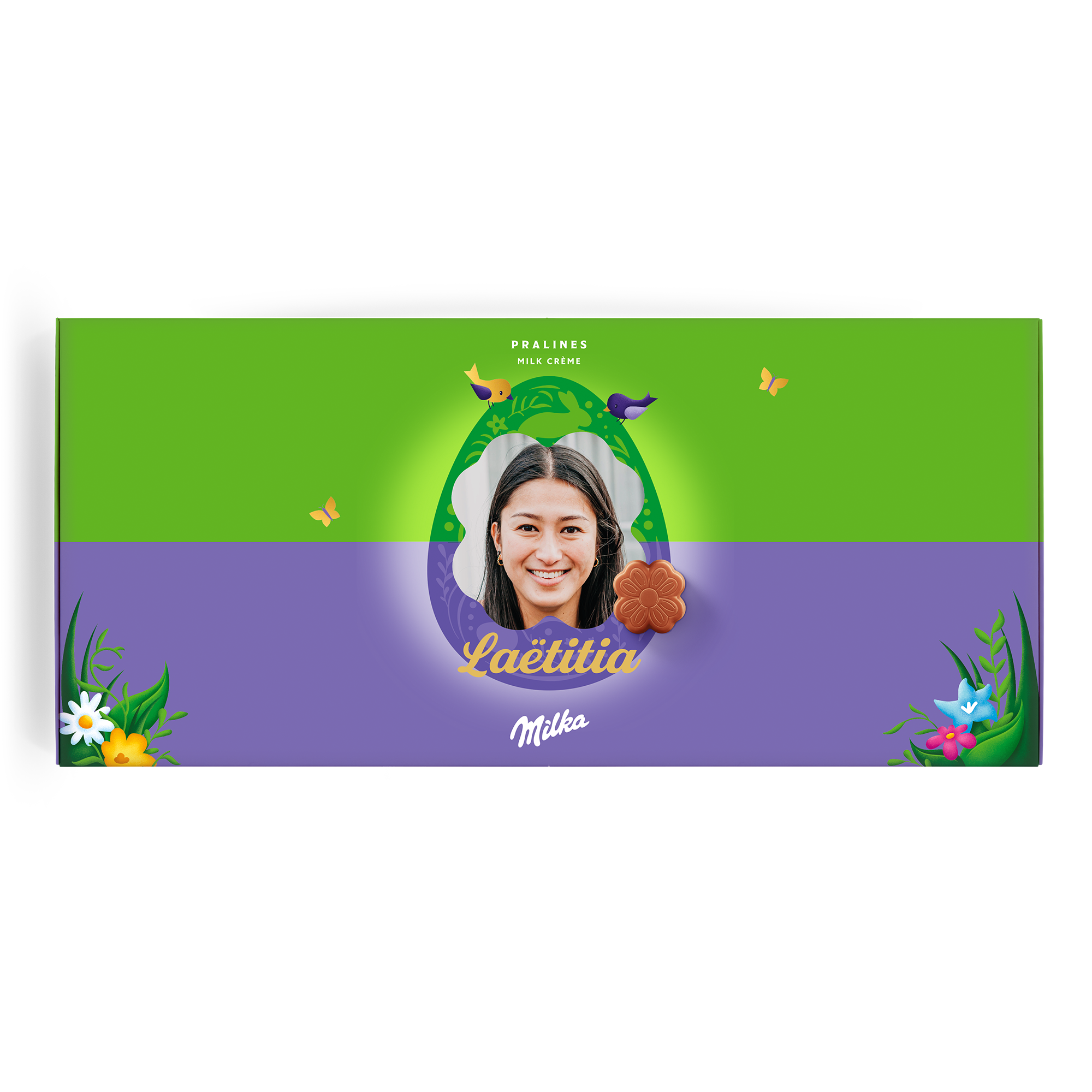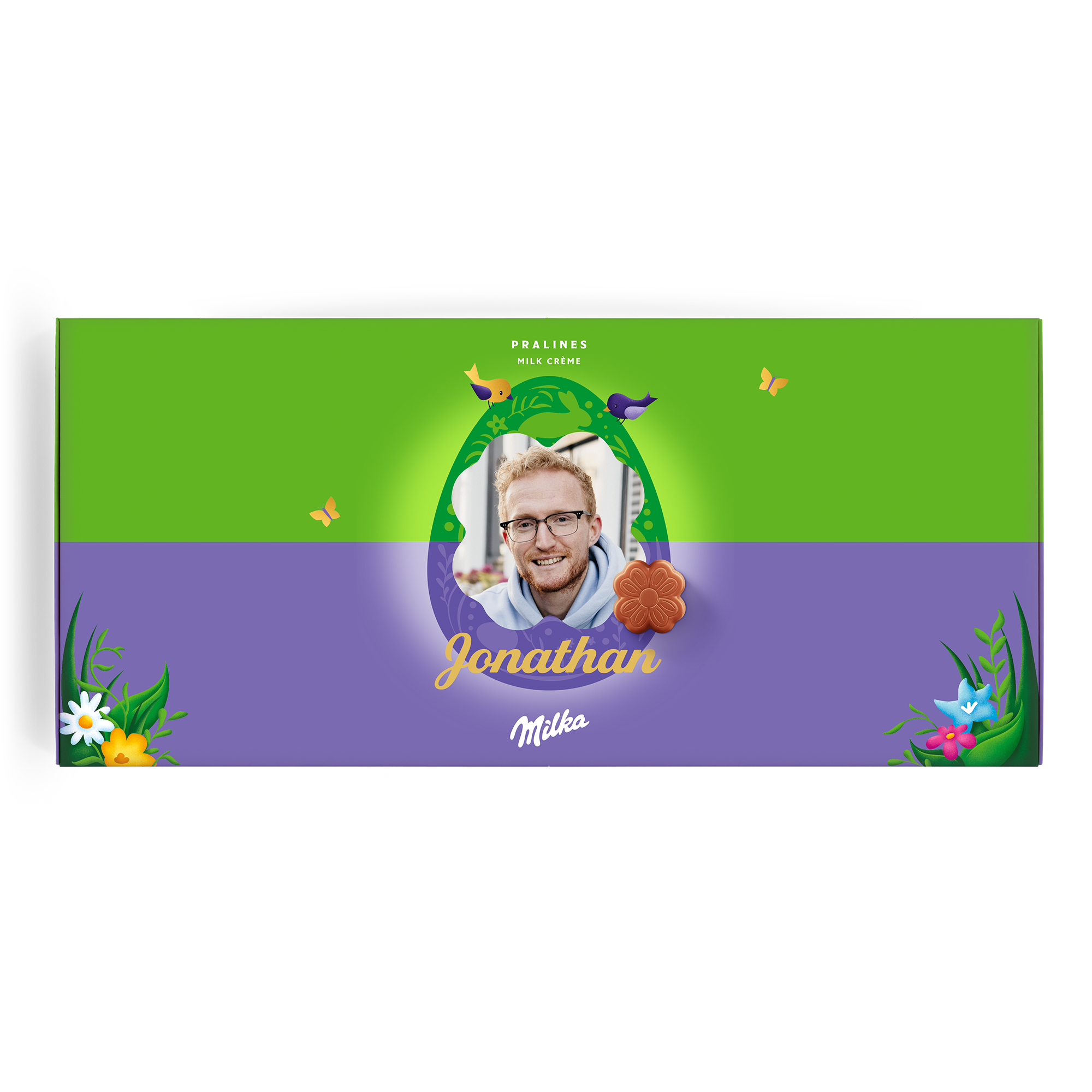 Wyjątkowe pudełko czekoladek Milka na Wielkanoc. Pyszne praliny z imieniem, zdjęciem i osobistą wiadomością. Zaskocz swoich bliskich!