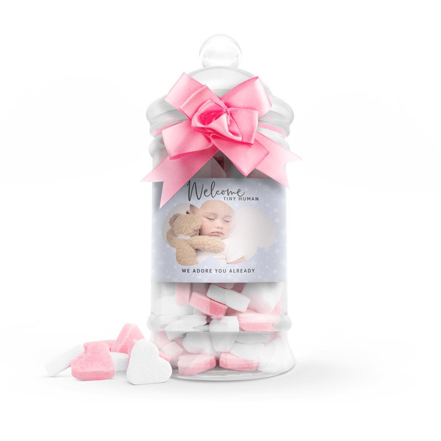 Zaprojektuj butelkę wypełnioną cukierkami! Idealny prezent na babyshower lub narodziny dziecka.