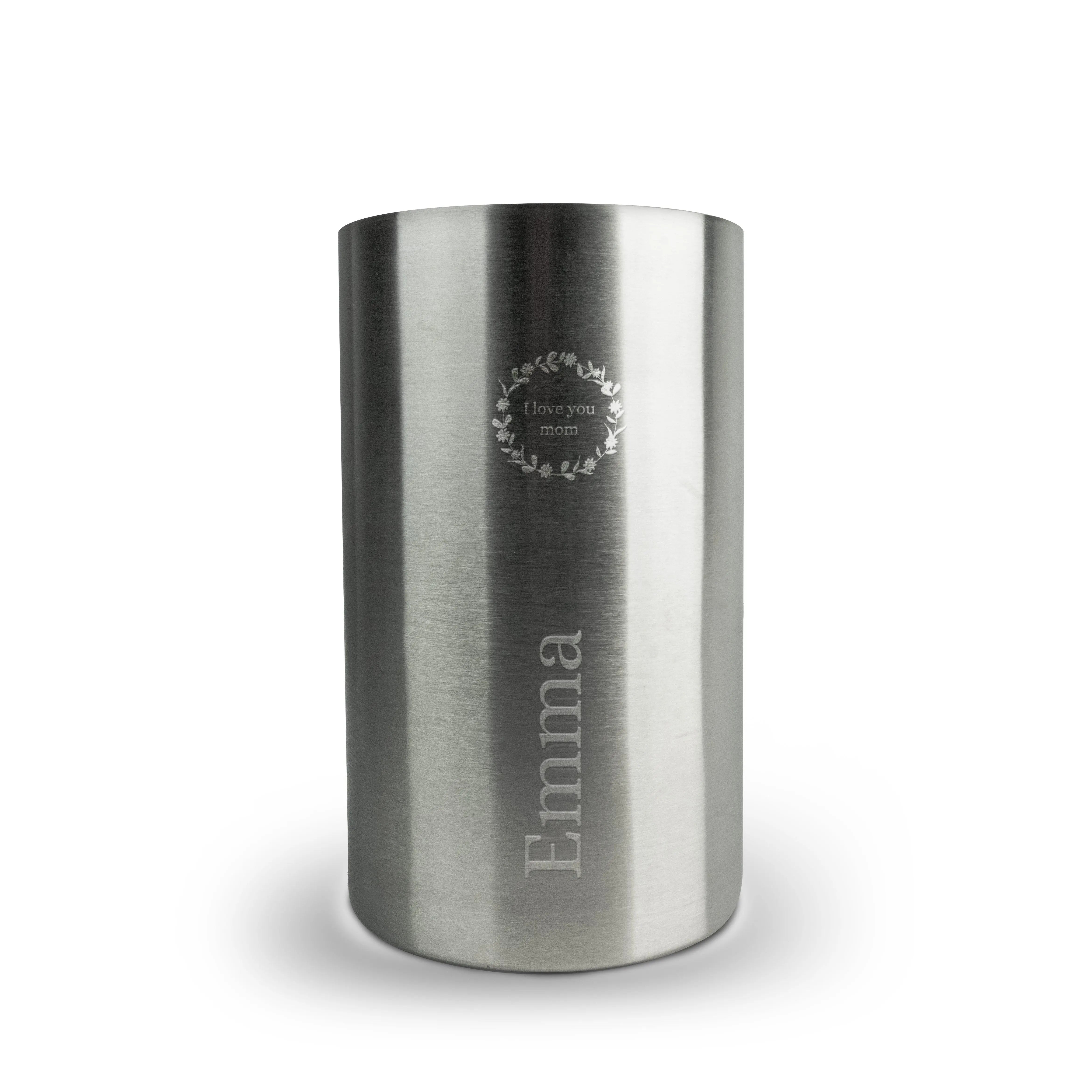 Jeśli szukasz luksusowego, osobistego prezentu, wybierz tę grawerowaną chłodziarkę do wina z wybranym przez Ciebie imieniem lub tekstem.Więcej informacji na temat chłodziarki do wina:Materiał: stal nierdzewnaKolor: srebrnyWymiary: 20 x 12 x 12 cm / 7,9" x 4,7" x 4,7"Personalizacja: grawerowanie tekstu