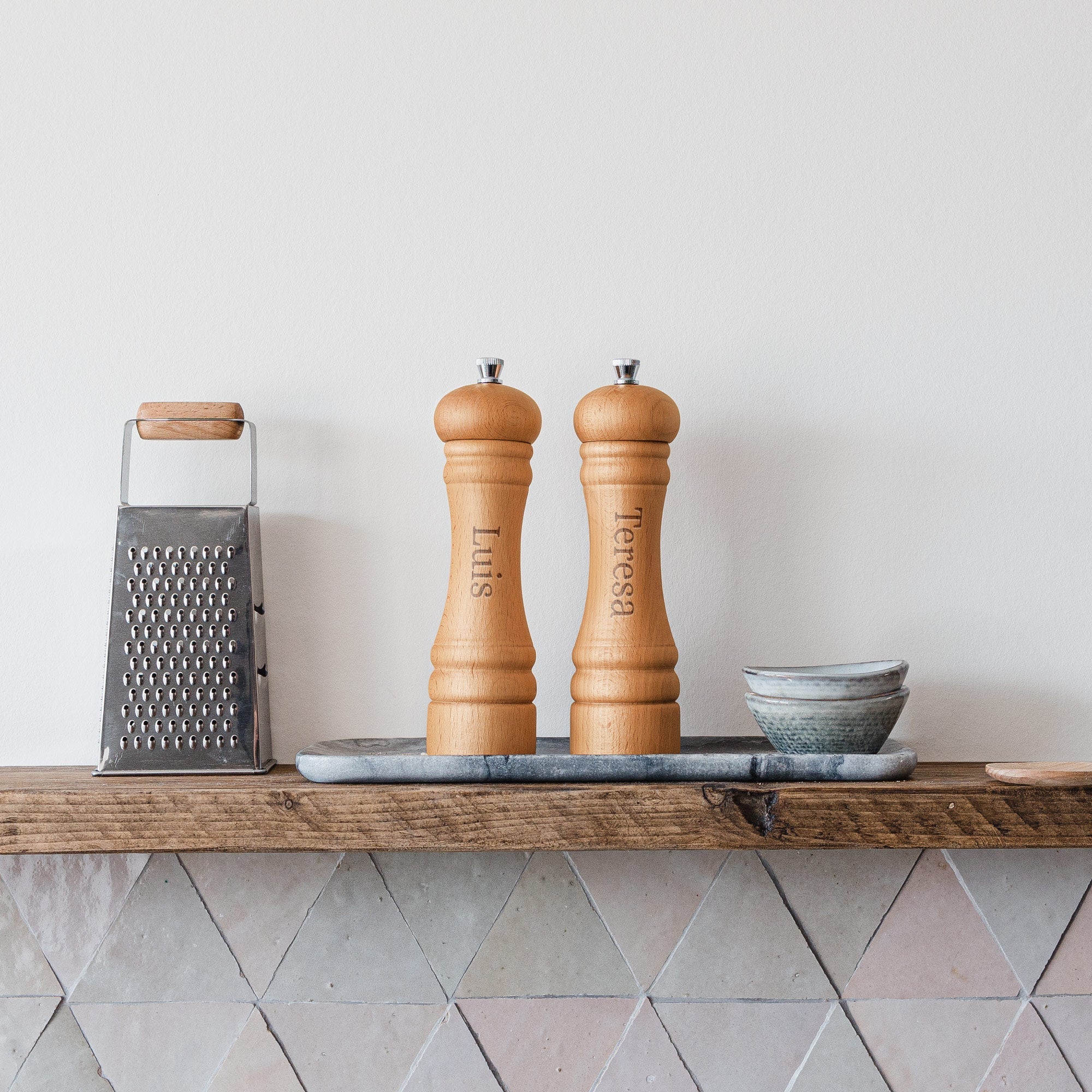 Idealny prezent dla każdego miłośnika gotowania. Wyjątkowy zestaw młynków do soli i pieprzu, personalizowany imieniem lub wybranym tekstem.