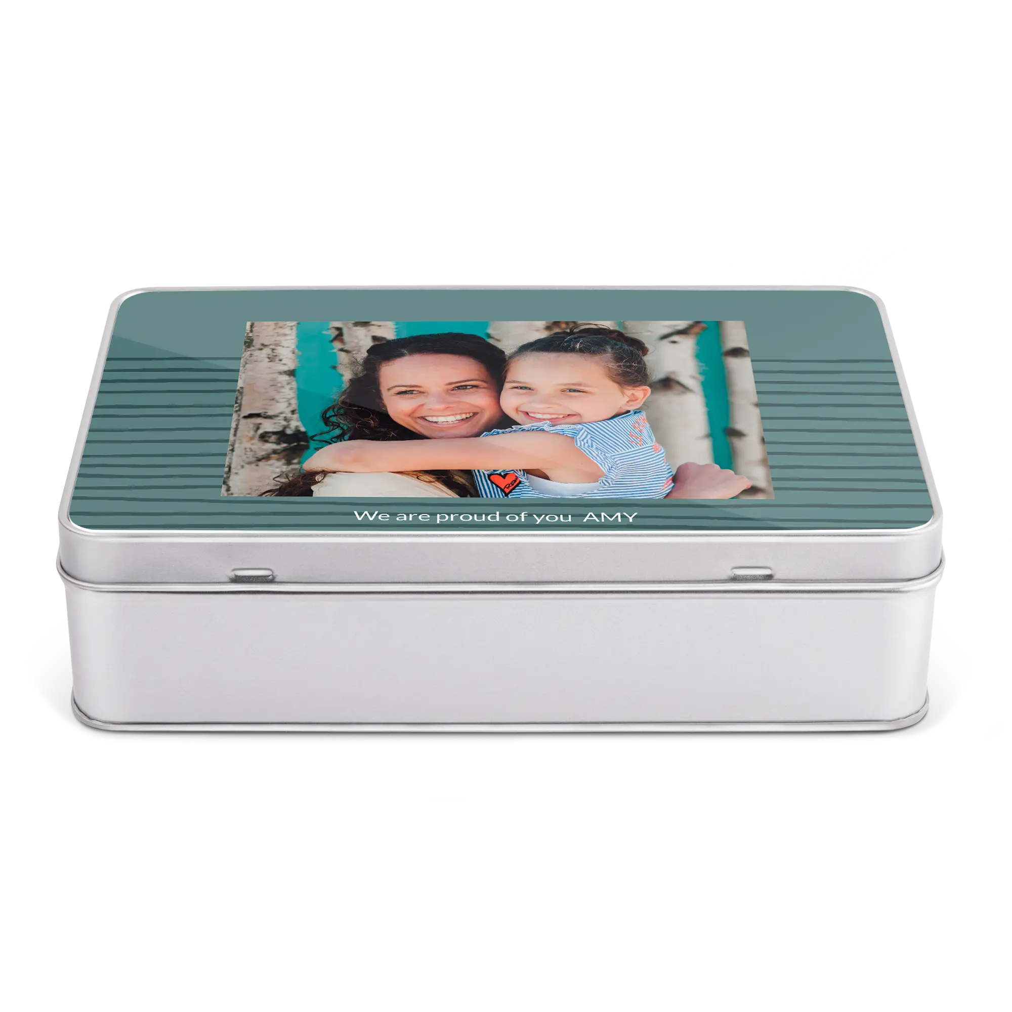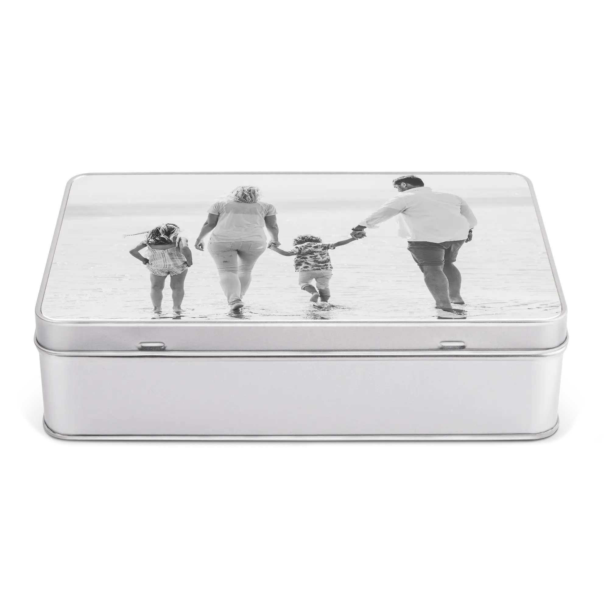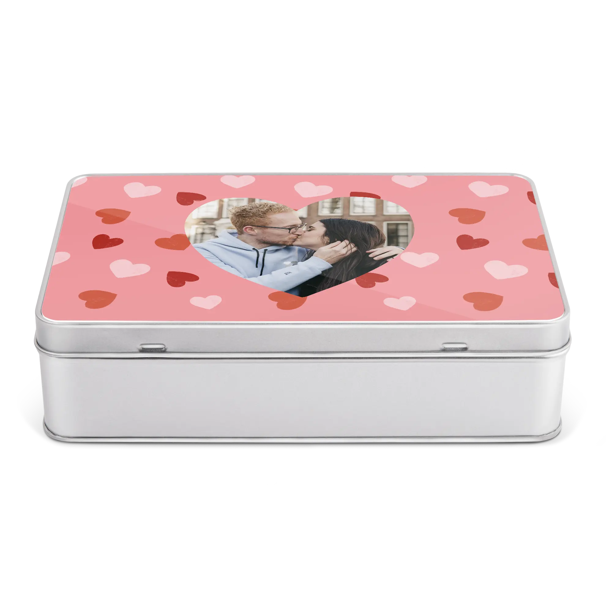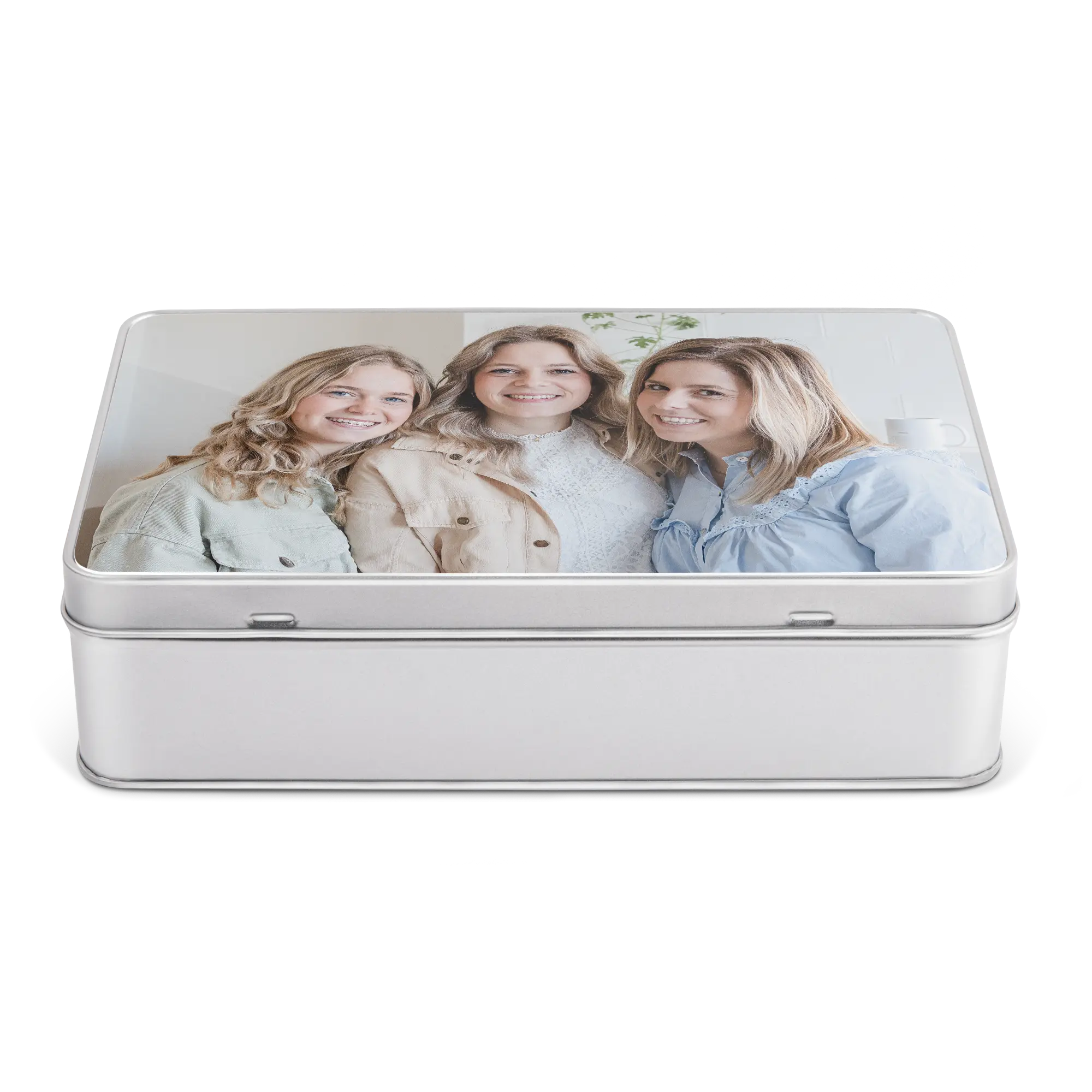 Super fajna puszka do przechowywania ze zdjęciem i/lub imieniem! Wypełniona pysznymi Oreo pokrytymi warstwą czekolady.Więcej informacji o puszce prezentowej: Kształt: prostokąt Materiał: puszka Wymiary: 20 x 12,5 x 5 cm Zawartość: Oreo w polewie i Ciasteczka Oreo w białej polewieWaga: 170 grPersonalizacja: zdjęcie i/lub tekst na aluminiowej tabliczce na pokrywceDodatkowo: zalecane mycie ręczneCiasteczka Oreo w mlecznej czekoladzie:Składniki: Cukier, mąka PSZENNA, olej palmowy, tłuszcz shea, odtłuszczone kakao w proszku 4,5%, olej rzepakowy, odtłuszczone MLEKO W PROSZKU, SKROBIA PSZENNA, laktoza (z MLEKA), syrop glukozowo-fruktozowy, emulgatory (lecytyna SOJOWA, E492, lecytyna słonecznikowa, E476), węglan amonu (węglany potasu), węglany sodu), sól, aromaty.Alergeny: zawiera mleko, soję, pszenicę, zboża zawierające gluten. Ciasteczka kakaowe (38%) z nadzieniem o smaku waniliowym (19%), oblane polewą o smaku mlecznej czekolady (43%). Ciasteczka Oreo oblane białą czekoladą: Składniki: Cukier, mąka PSZENNA, olej palmowy, tłuszcz shea, olej rzepakowy, odtłuszczone MLEKO w proszku, odtłuszczone kakao w proszku 2%, SKROBIA PSZENNA, laktoza (z MLEKA), serwatka w proszku (z MLEKA), syrop glukozowo-fruktozowy, TŁUSZCZ MLECZNY, emulgatory (lecytyna SOJOWA), lecytyna słonecznikowa, E492, substancje spulchniające (węglany potasu, węglany amonu, węglany sodu), sól, aromaty. Ciastka kakaowe (38%) z nadzieniem o smaku waniliowym (19%), oblane polewą (43%) o smaku białej czekolady. Alergeny: zawiera mleko, soję, pszenicę, zboża zawierające gluten. Niestety, w tropikalnych temperaturach powyżej 25 stopni Celsjusza nie możemy zagwarantować, że otrzymają Państwo czekoladowy prezent w idealnym stanie. W razie pytań prosimy o kontakt z naszym działem obsługi klienta. Niestety, ze względów technicznych nie jest możliwe drukowanie cyfr, cyrylicy, tureckich znaków ani znaków specjalnych.