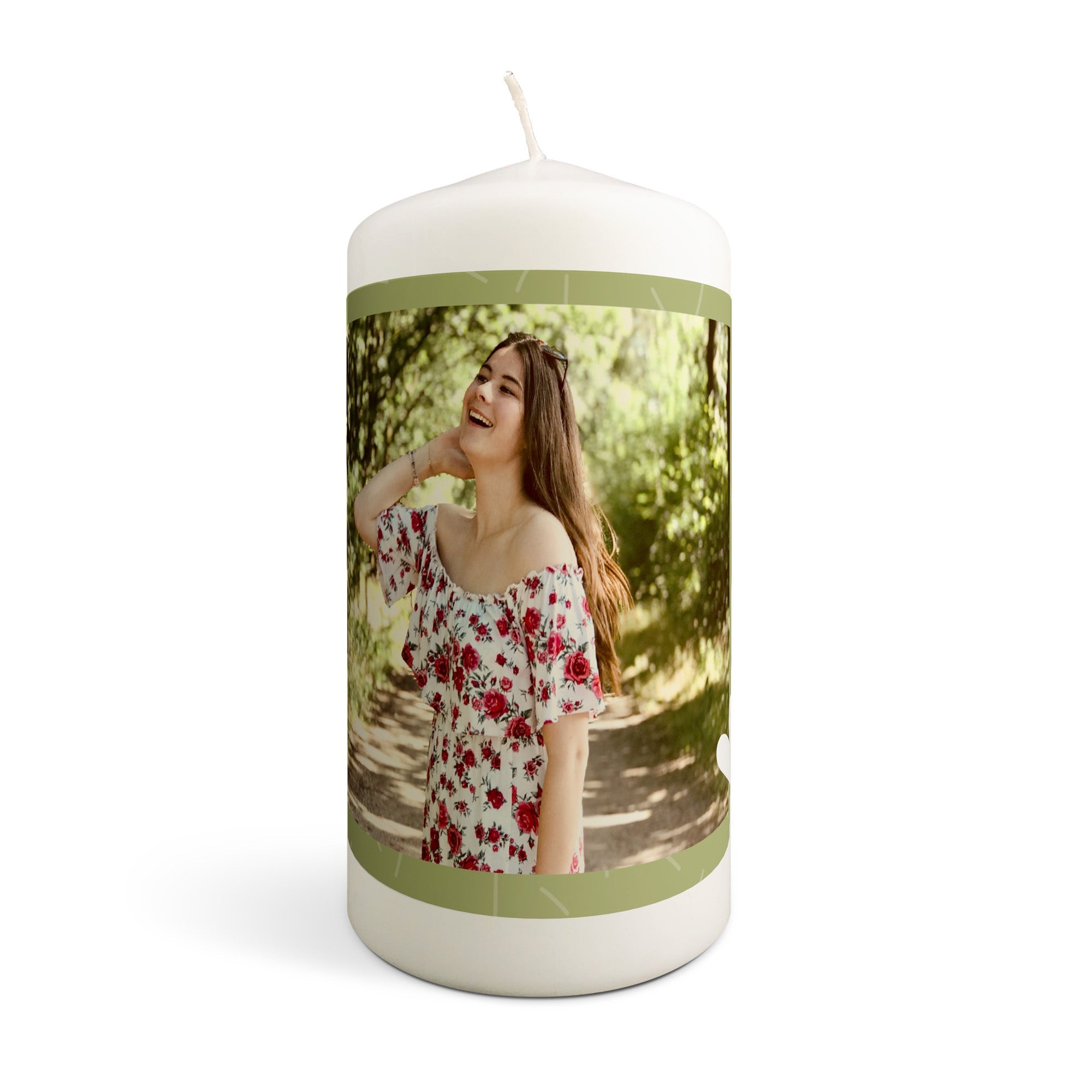 Więcej informacji o świecy:Wysokość: 19 cmŚrednica: 10 cmCzas palenia: 60Godziny palenia: 60Personalizacja: zdjęciem, imieniem i/lub logo Nadruk: idealny, w pełnym kolorze