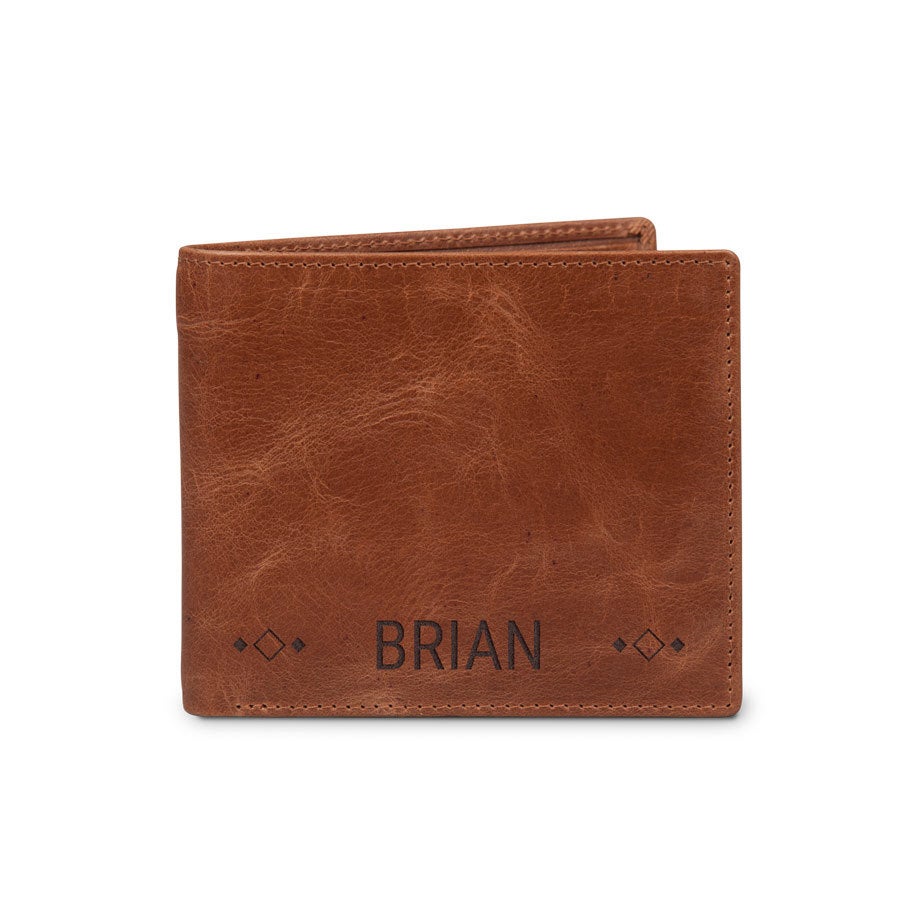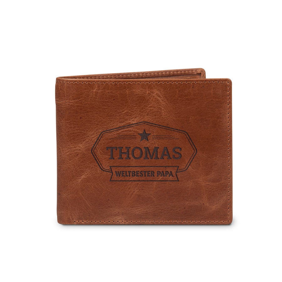 Więcej informacji na temat grawerowanego skórzanego portfela:Model: portfel składany Materiał: pełnoziarnista skóra bawola garbowana roślinnie Wymiary: 11,5 x 9,5 x 2,3 cm Kolor: brązowy (brandy) Zawartość: miejsce na karty, zdjęcia, banknoty i monety Wykończenie: wysokiej jakości grawer laserowy Personalizacja: imieniem i/lub tekstem Dodatkowo: Skóra jest produktem naturalnym. Oznacza to, że Twój prezent może nieznacznie różnić się od przykładowego zdjęcia.