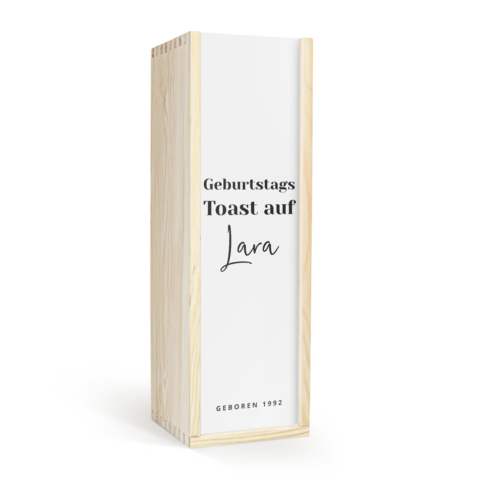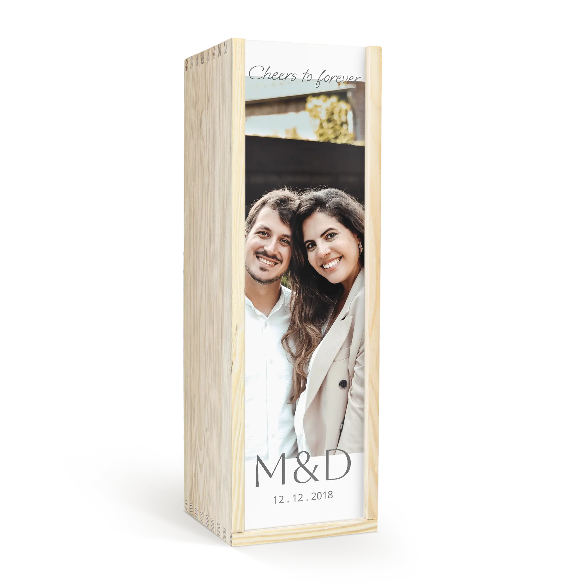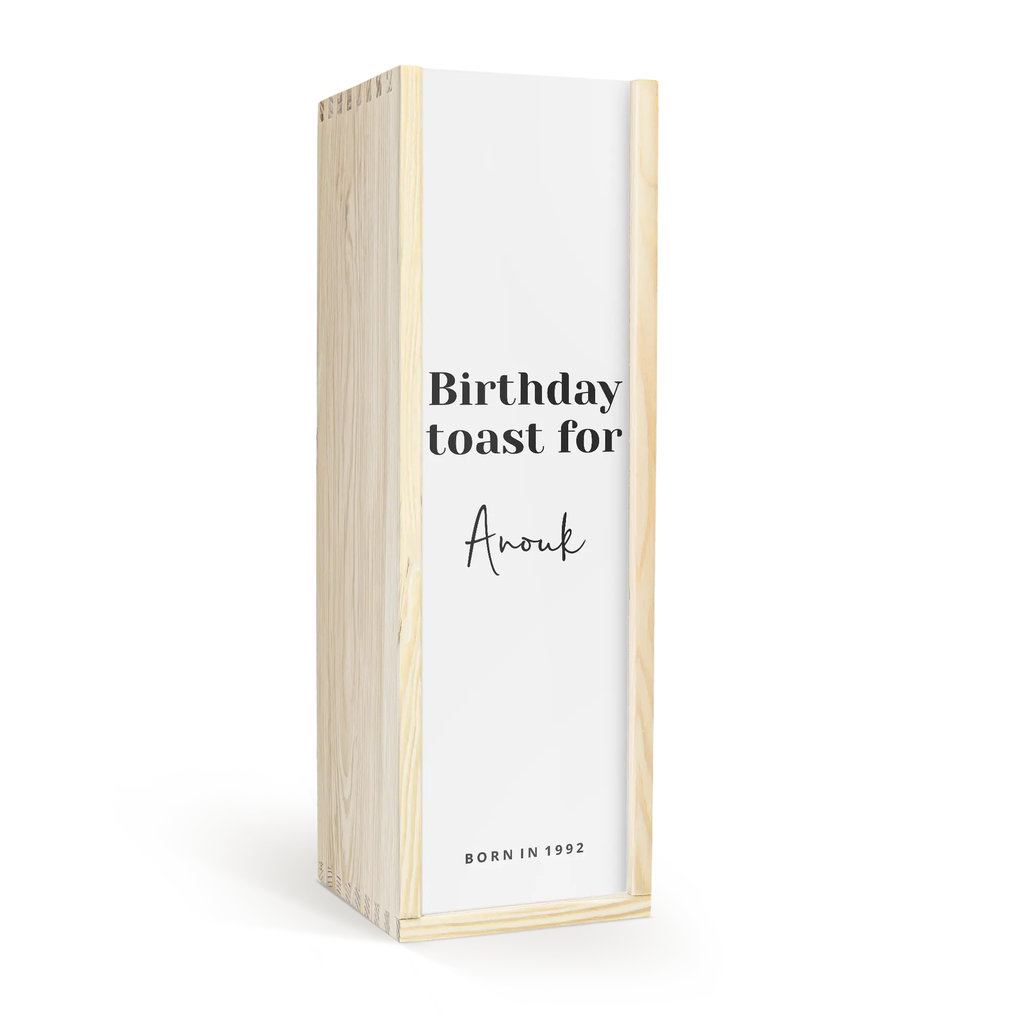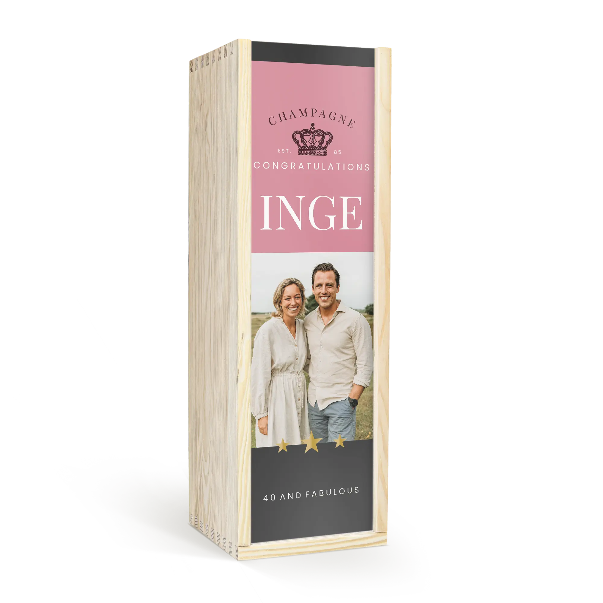 Pyszna butelka prawdziwego szampana Moët & Chandon w spersonalizowanej drewnianej skrzynce z Twoim imieniem lub tekstem. Dostępne różne rozmiary butelek!