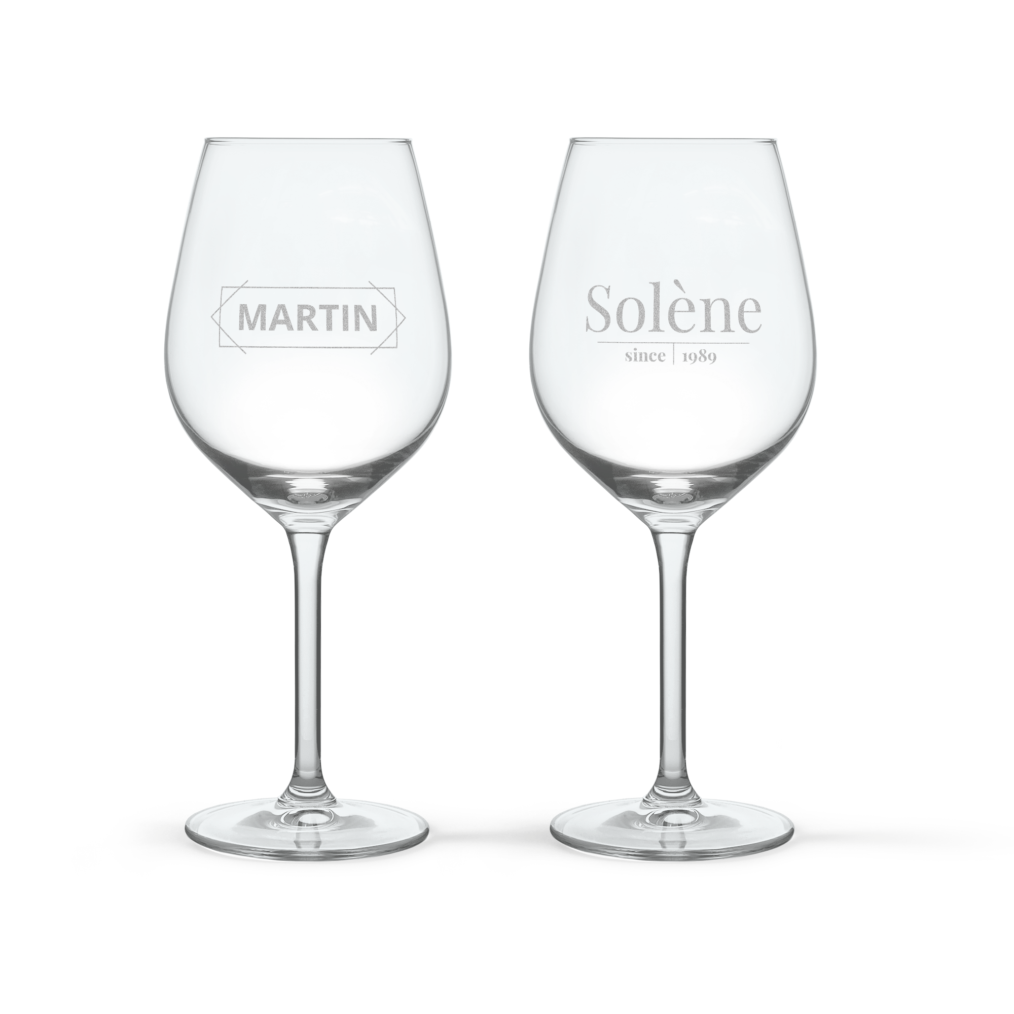 Dwa piękne kieliszki do wina z możliwością personalizacji.