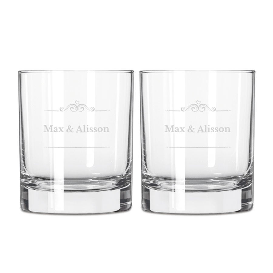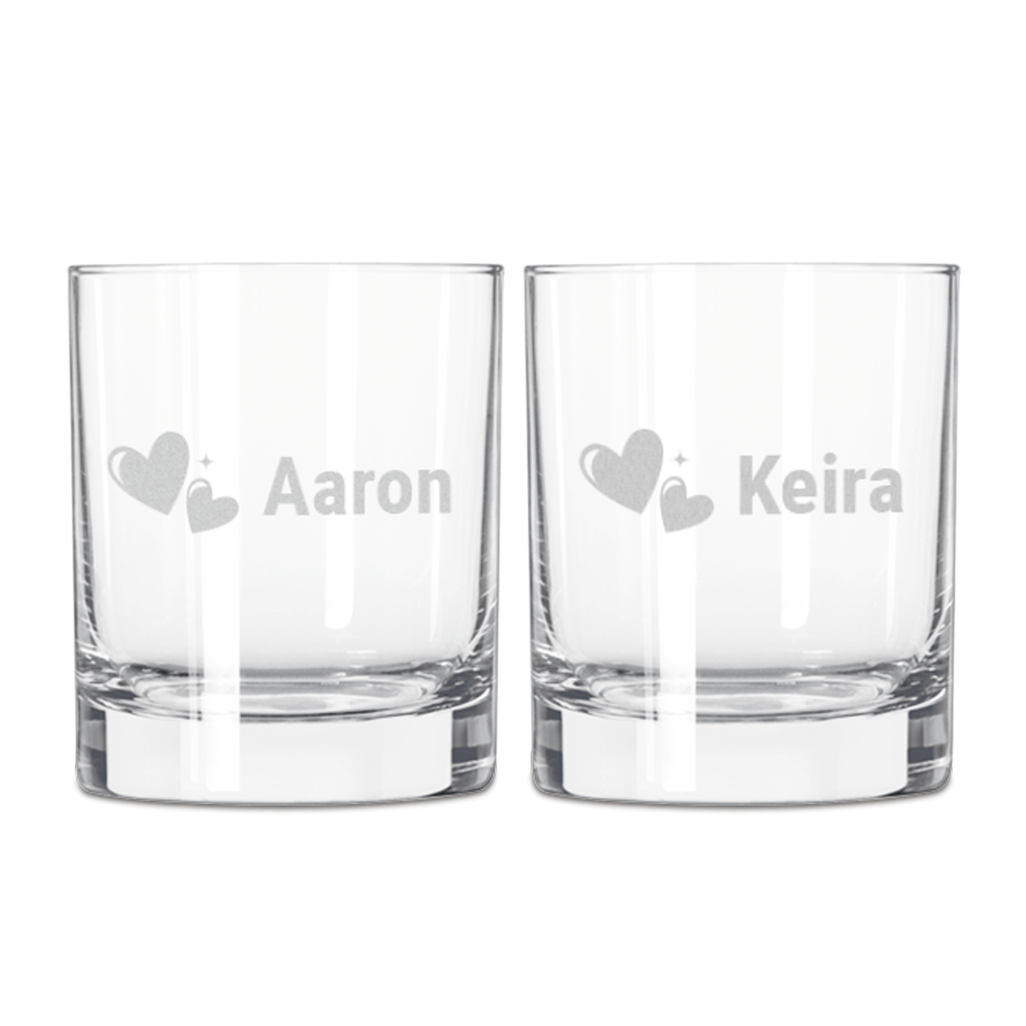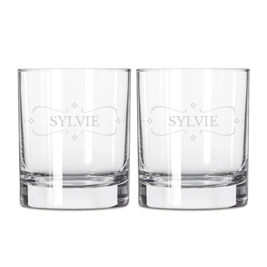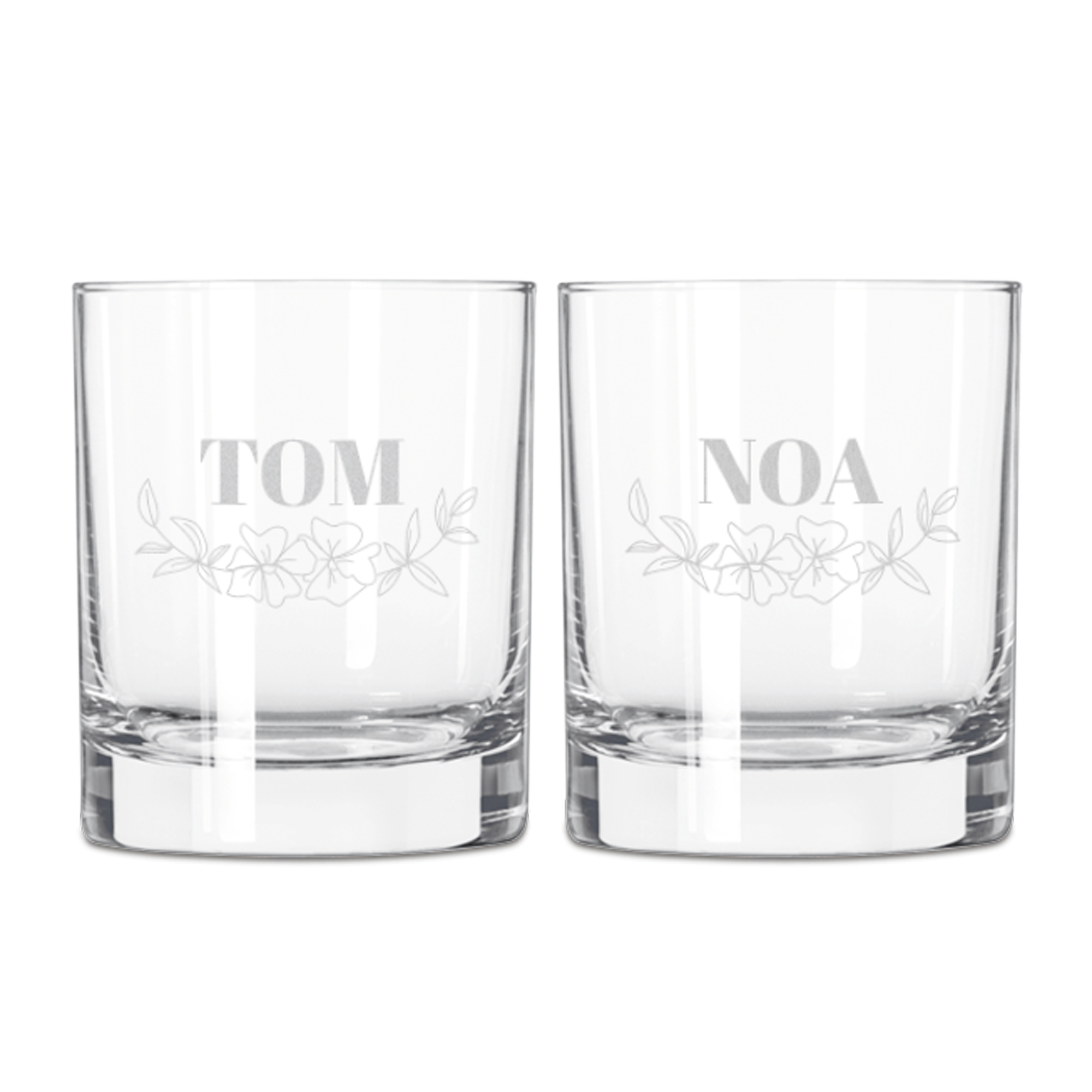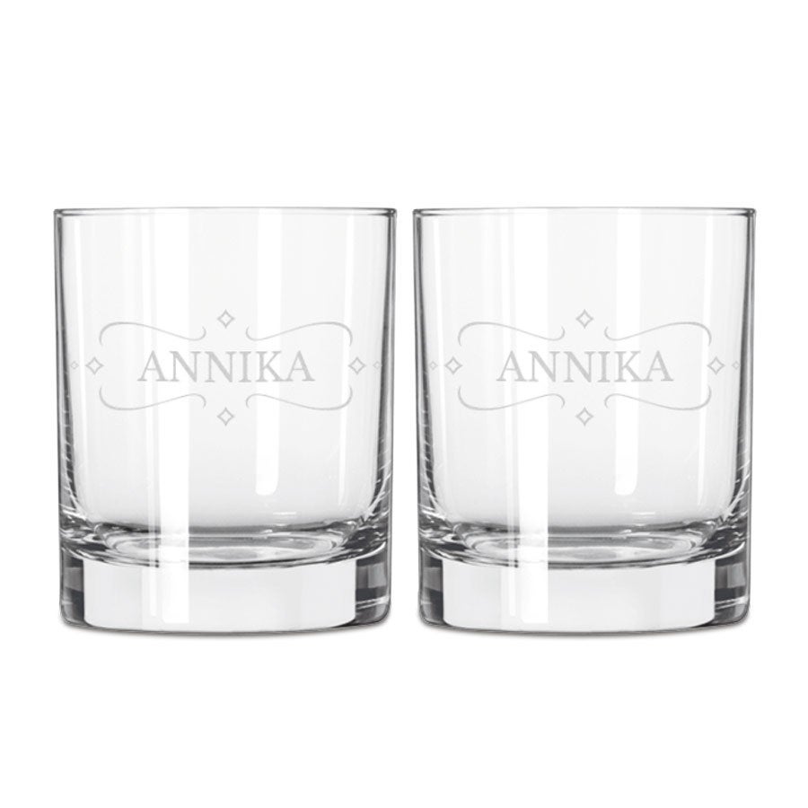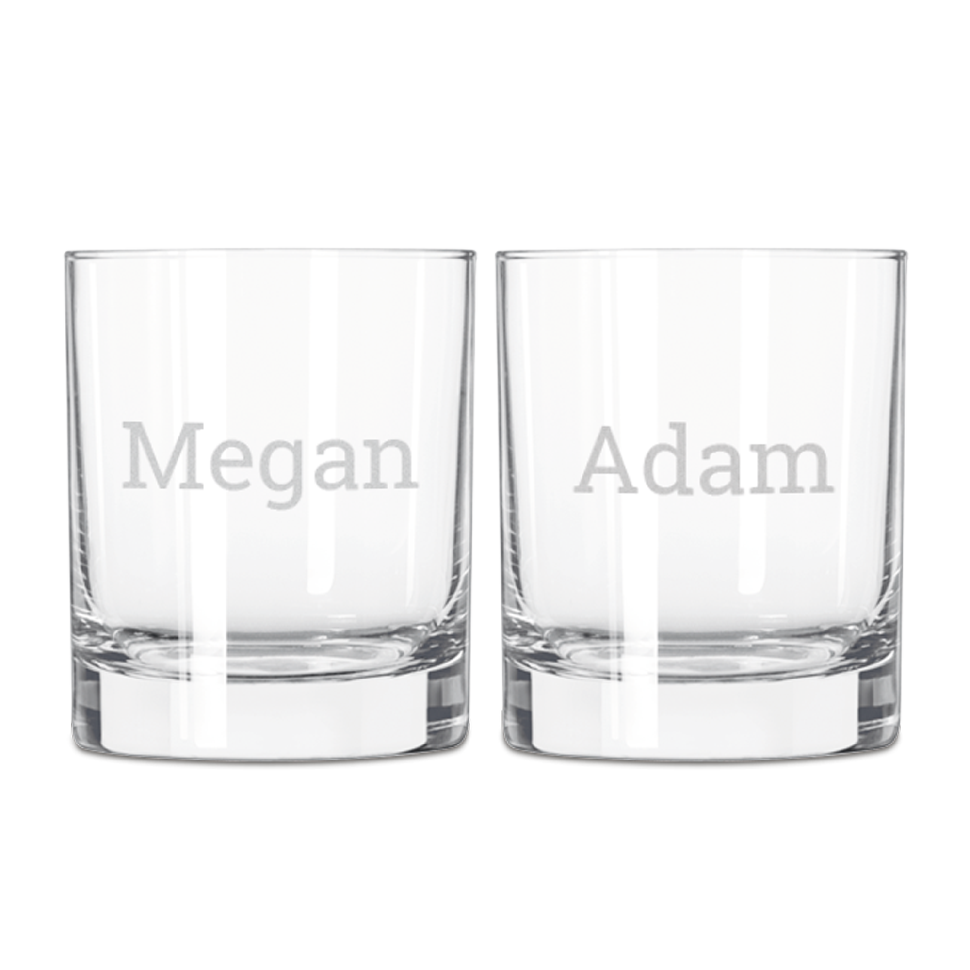 Zamów te szklanki do whisky z grawerunkiem imienia lub tekstu. Wysokość 8,5 cm, pojemność 20 cl. Wyprodukowane przez markę Libbey.