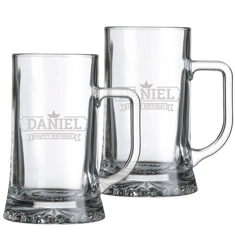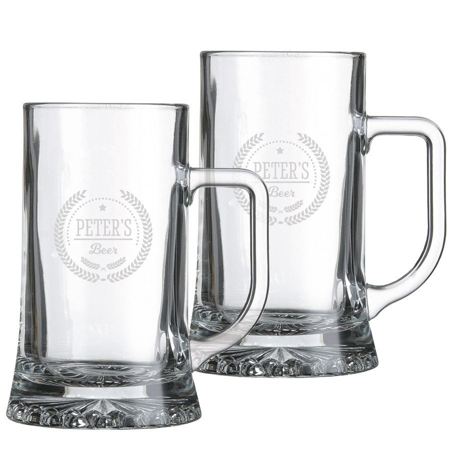 Szklany kufel piwowy z grawerem - zestaw 2 sztuk