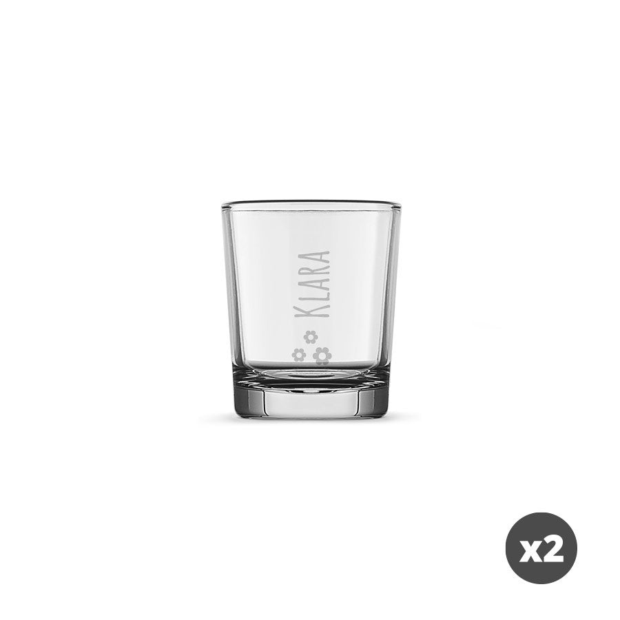 Więcej informacji na temat grawerowanego kieliszka do shotów:Średnica: 4,5 cm Wysokość: +/-5 cm Zawartość: 5 cl Personalizacja: imieniem i/lub tekstem Grawerunek: biały, efekt końcowy może różnić się od podglądu Dodatkowo: Można myć w zmywarce