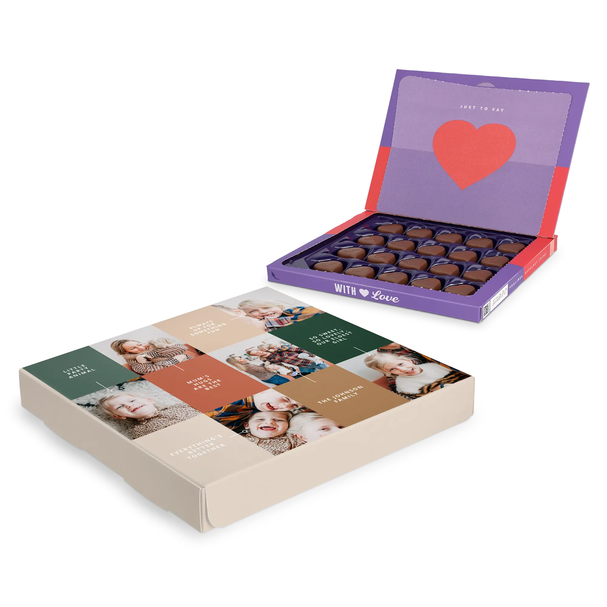 Zaskocz swojego tatę tym wyjątkowym pudełkiem prezentowym Milka! Pyszne czekoladki w kształcie serca. Zabawne wzory na Dzień Ojca!Więcej informacji na temat spersonalizowanego pudełka prezentowego Milka:Czekolada: Alpejska czekolada mleczna z nadzieniem z orzechów laskowych i nugatu Kształt: serce Ilość: 20 czekoladekWaga: 110 gramówWymiary pudełka prezentowego: 19,5 x 18 x 2 cmPersonalizacja: zdjęcie, imię i osobista wiadomośćNadruk: idealny do zdjęć i w pełnym kolorzeUwaga: Jeśli temperatura na zewnątrz wynosi 25 stopni Celsjusza lub więcej, nie będziemy w stanie zagwarantować jakości czekolady. W przypadku pytań dotyczących zamówień czekolady prosimy o kontakt z naszym działem obsługi klienta. Ze względów technicznych nie jest możliwe przetwarzanie znaków cyrylicy, tureckich, azjatyckich, arabskich, greckich, skandynawskich ani znaków specjalnych. Składniki: Cukier, masło kakaowe, olej palmowy, miazga kakaowa, serwatka w proszku (MLEKO), odtłuszczone MLEKO w proszku, tłuszcz MLECZNY, 5% krem z ORZECHÓW LASKOWYCH, emulgatory (lecytyna SOJOWA, E476), aromaty (zawierające MLEKO). Alergeny: Zawiera orzechy laskowe, mleko i soję. Może zawierać (śladowe ilości) innych orzechów.