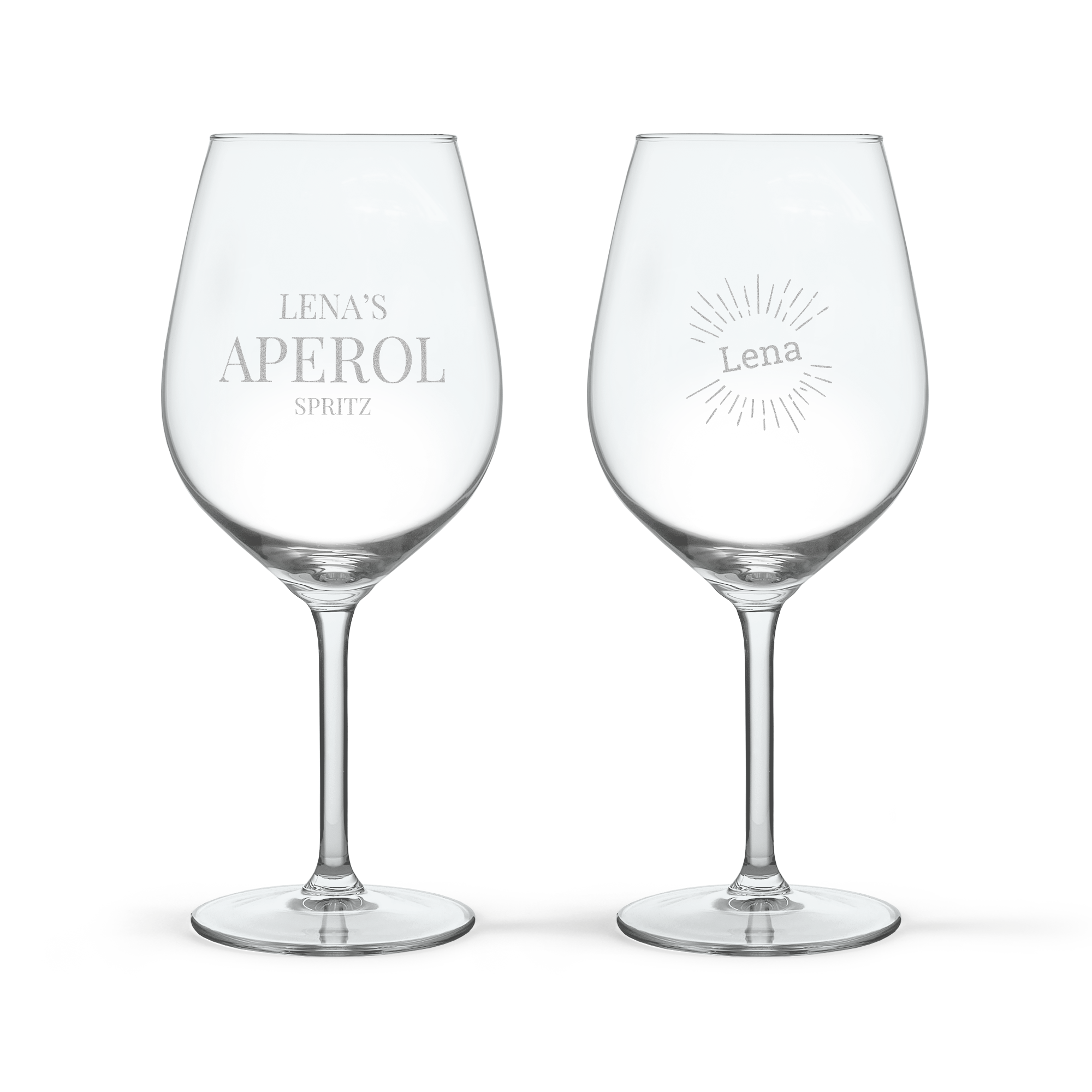 Aperol Spritz smakuje najlepiej w spersonalizowanych kieliszkach. Zleć wygrawerowanie imienia lub tekstu na kieliszkach. Na zdrowie!