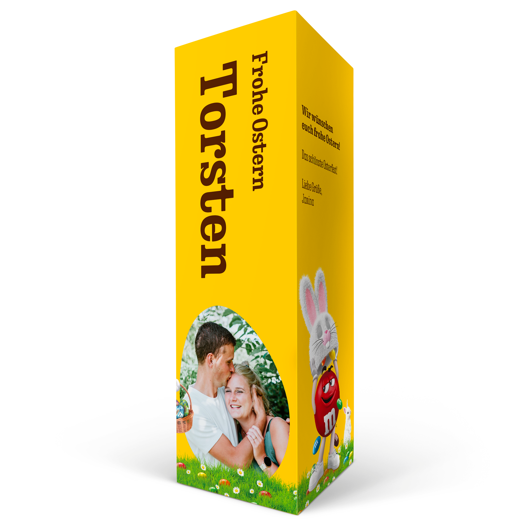 Zaskocz swoich bliskich nieodpartym spersonalizowanym pudełkiem prezentowym M&M's ze zdjęciem, imieniem i wybranym tekstem.