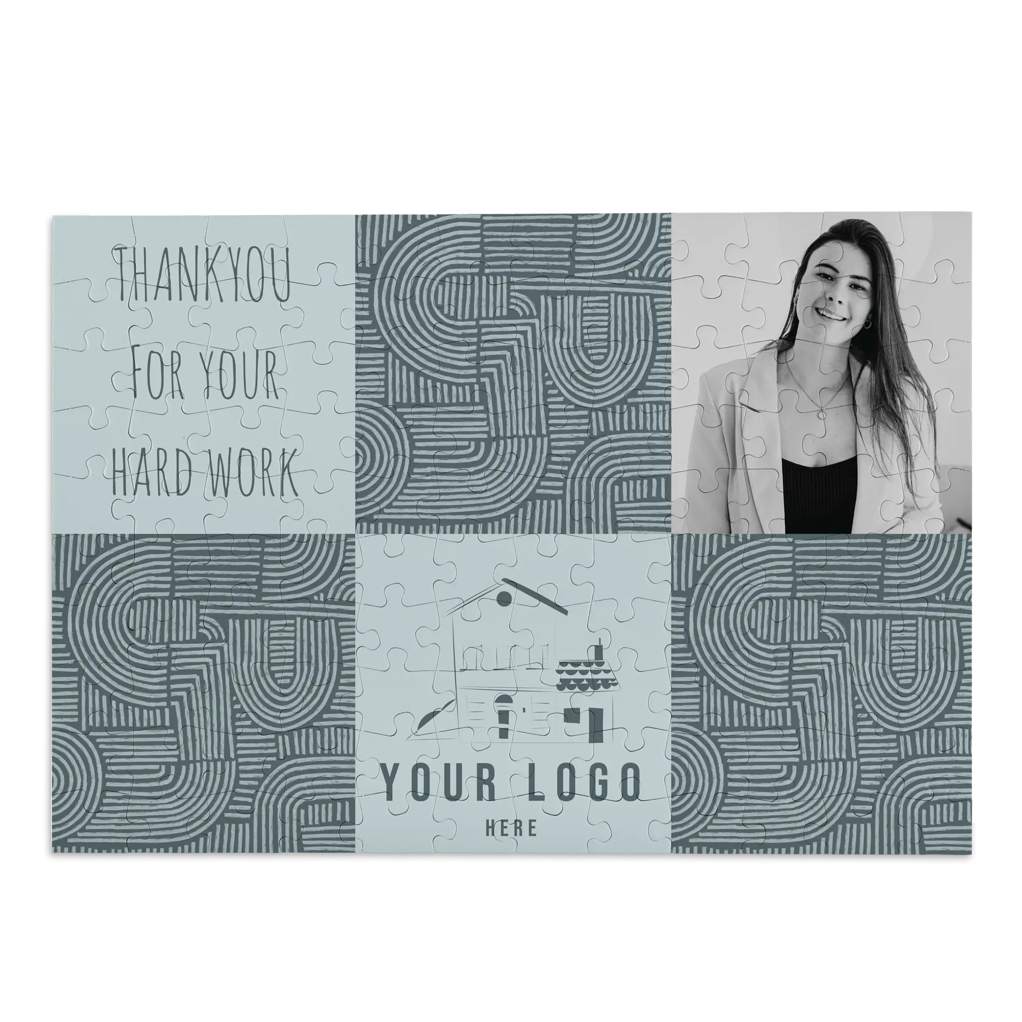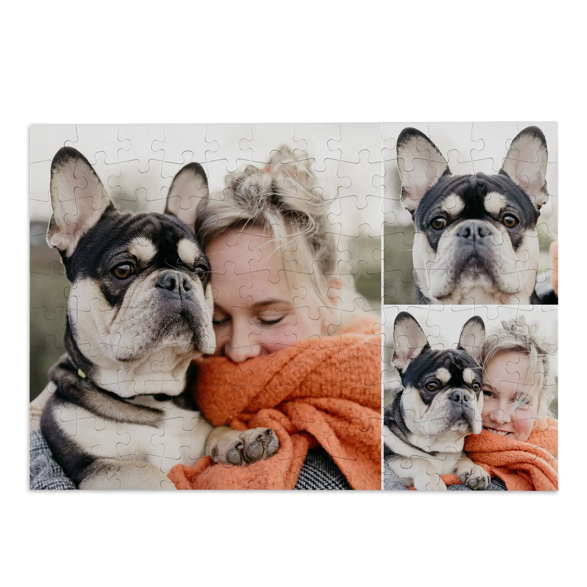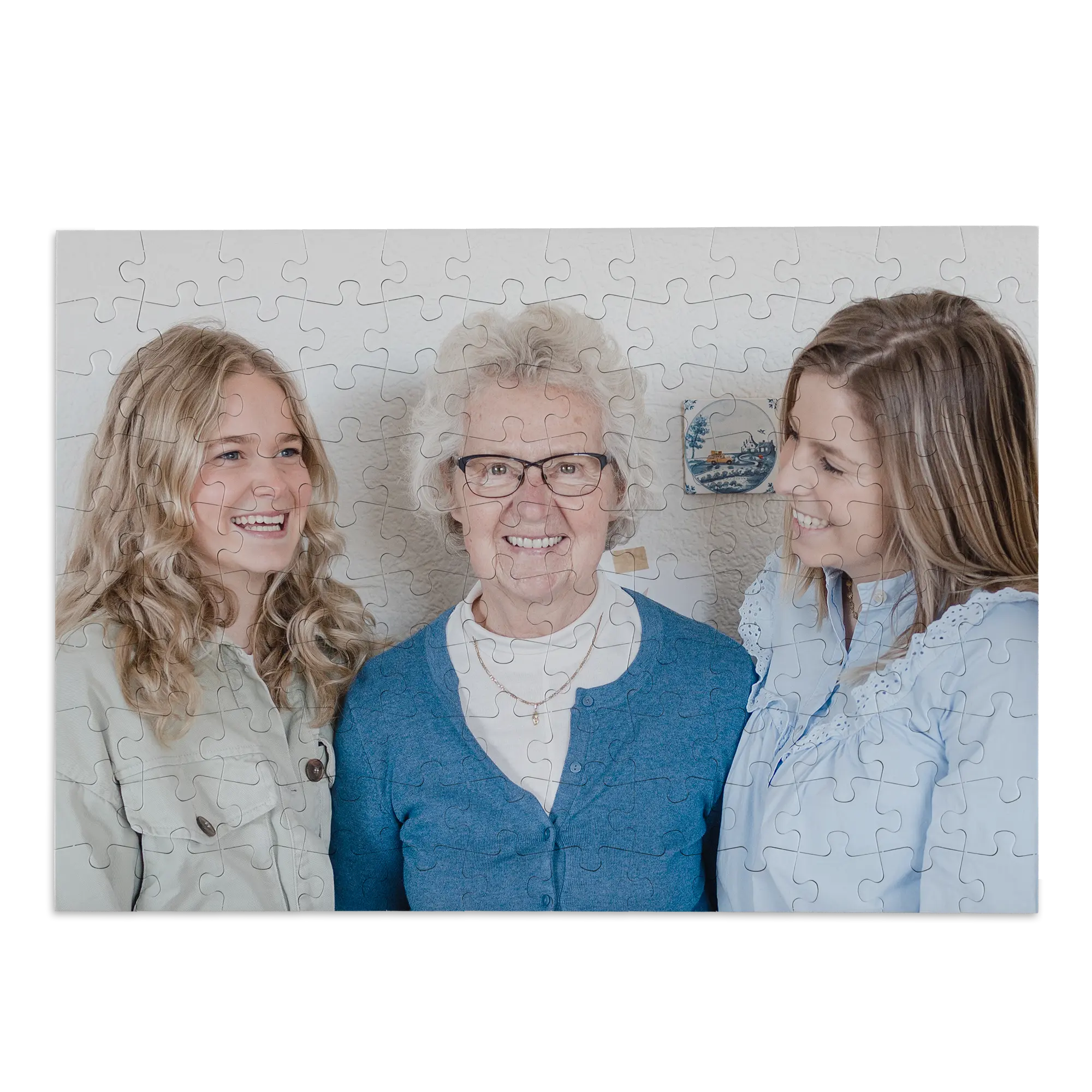 Spersonalizowana układanka z wybranym zdjęciem/zdjęciami i/lub tekstem. Wytrzymały materiał z błyszczącym wykończeniem.Więcej informacji na temat spersonalizowanej układanki: Liczba elementów: 120 Materiał: mocna tektura z błyszczącą warstwą wierzchnią Wymiary układanki: 28 x 19,5 x 0,2 cm Wymiary pudełka: 24 x 17,5 x 2,5 cm Personalizacja: zdjęciem i/lub tekstem Nadruk: wysokiej jakości i w pełnym kolorze
