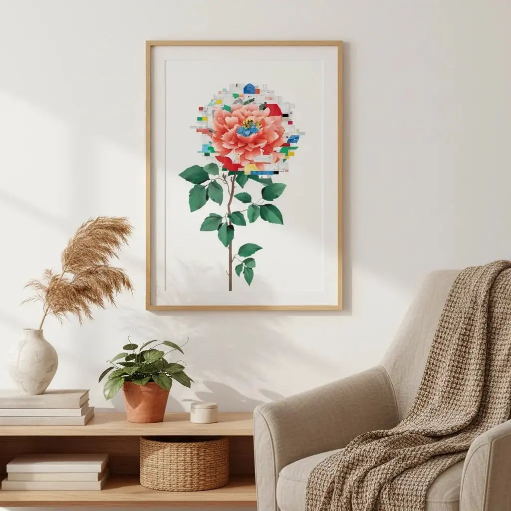 Żywy kolaż kwiatowy łączący kształty i kolory w żywą, nowoczesną kompozycję. Radosny gest dla kogoś, kto kocha odważną sztukę.