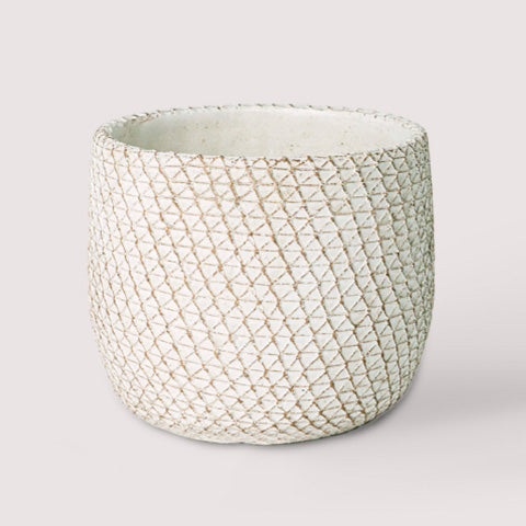 Minimalistyczny styl i teksturowane wykończenie. Wykonane z ceramiki. Średnica: 15 cm Wysokość: 15 cm