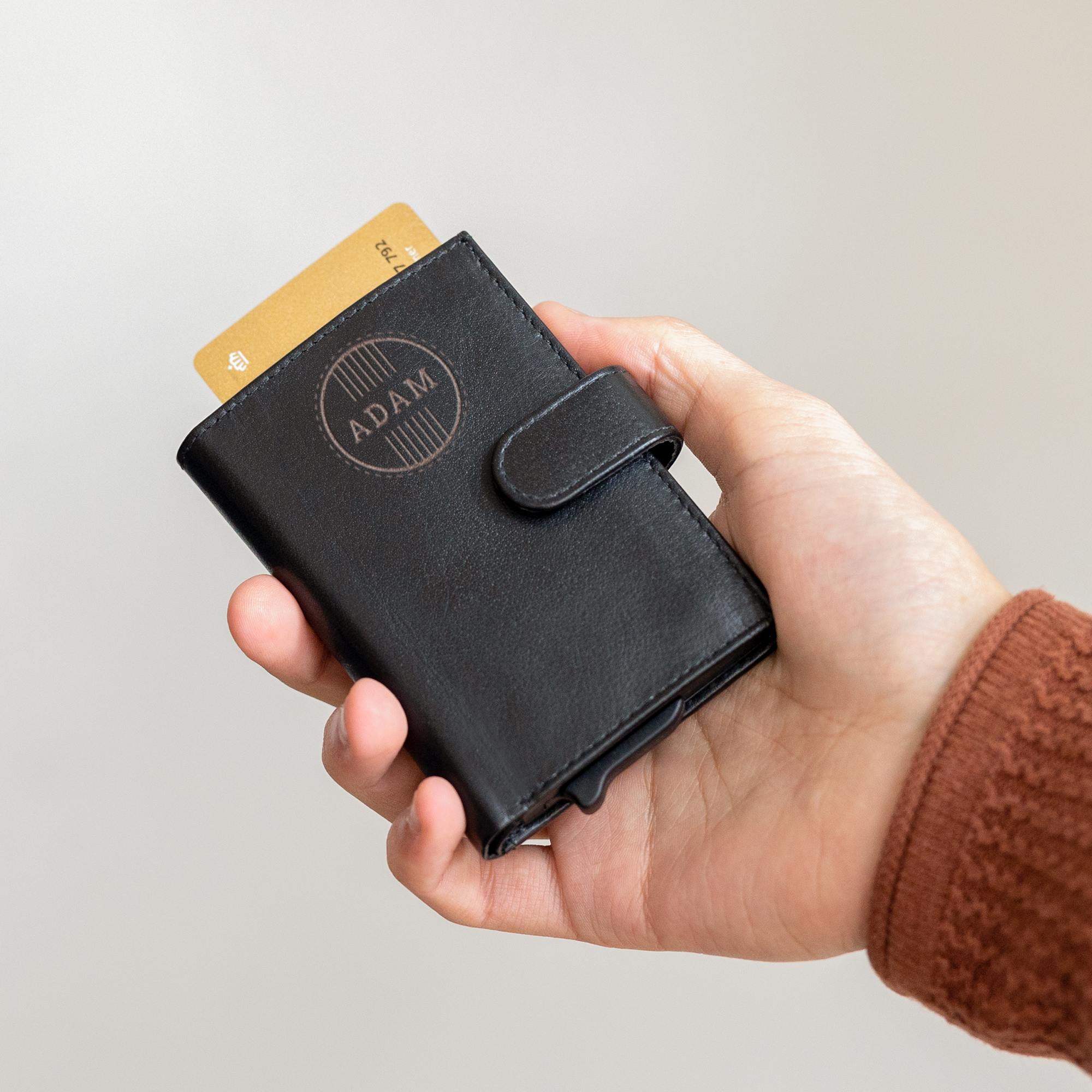 Wyjątkowy skórzany wizytownik z wygrawerowanym imieniem według Twojego wyboru. Naprawdę wyjątkowy prezent!