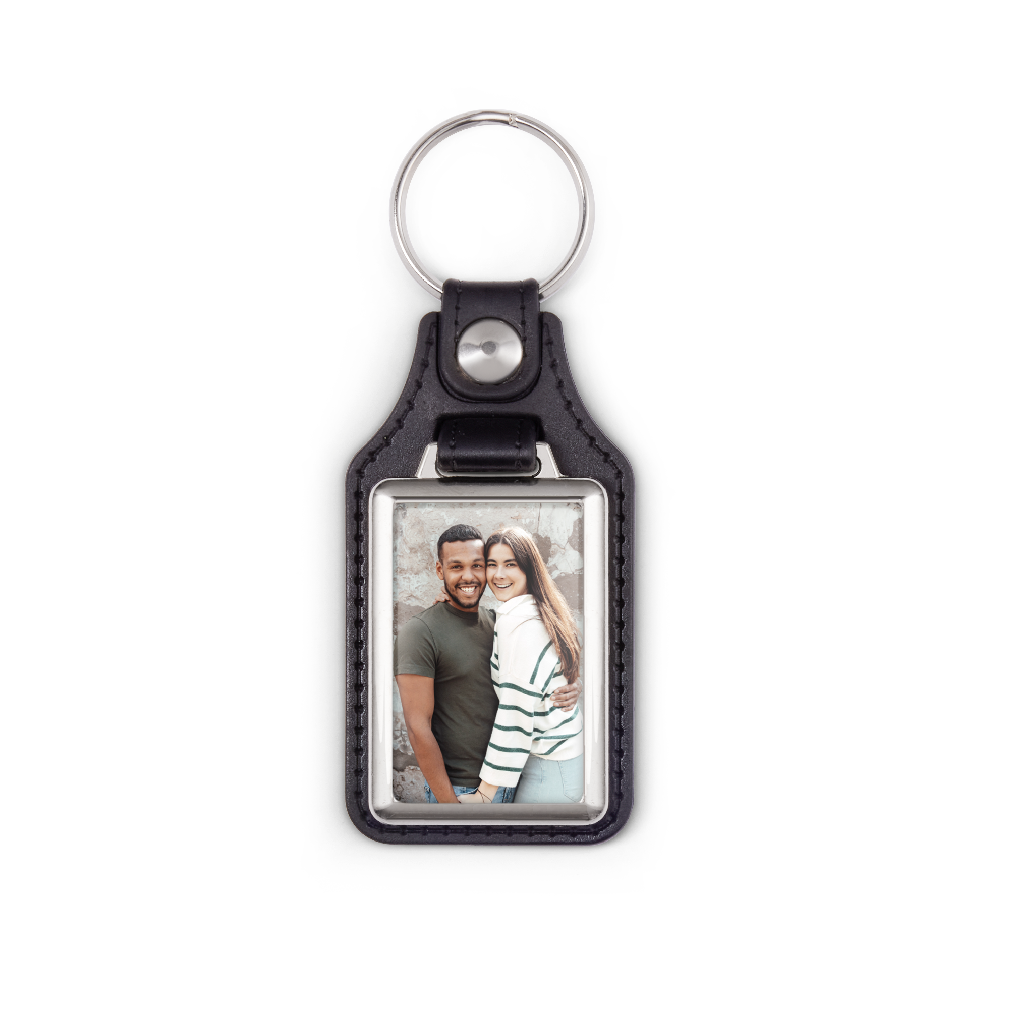 Więcej informacji o prostokątnym breloku:Materiał: Imitacja skóry i stal nierdzewnaNadruk: zdjęcie za pleksiglasemRozmiar: 7,5 x 5 cmRozmiar nadruku: 2,5 x 4 cm