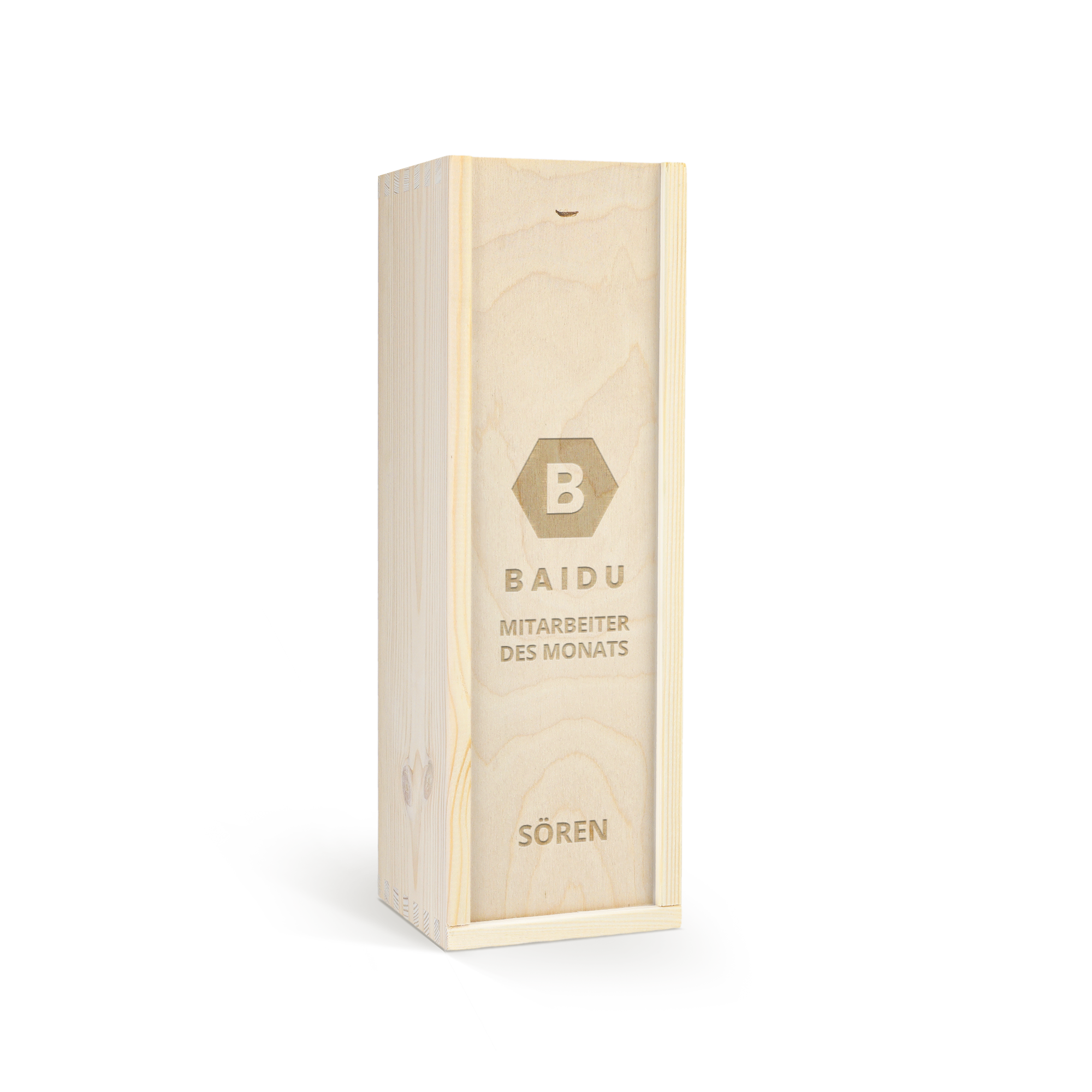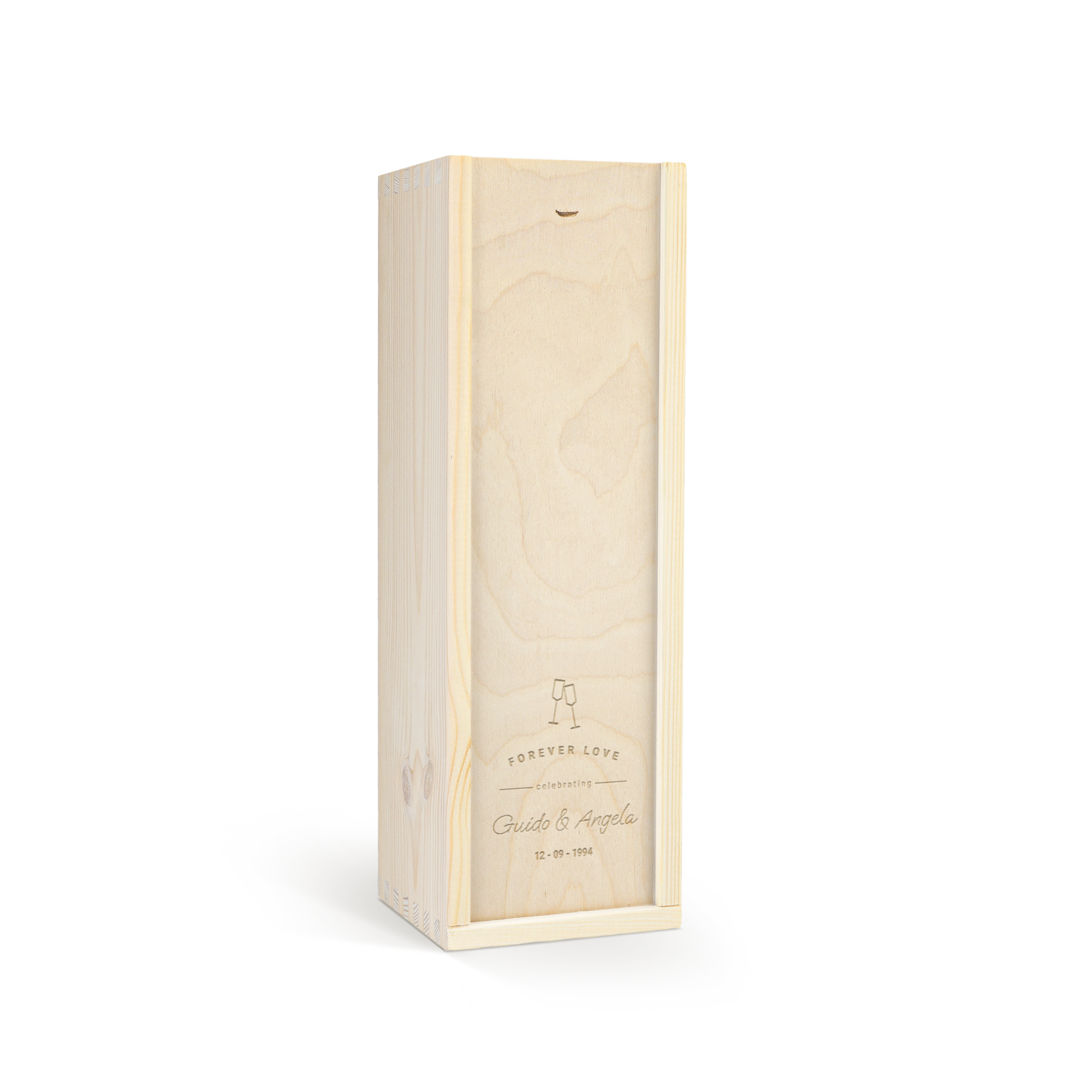 Więcej informacji o tej drewnianej skrzynce: Pasuje do jednej standardowej butelki o pojemności 75 cl. Personalizacja: imieniem lub tekstem. Miejsce personalizacji: na pokrywce. Metoda personalizacji: wysokiej jakości grawer. Wymiary zewnętrzne: 36,5 x 12 x 11 cm. Wymiary wewnętrzne: 34 x 9,5 x 9 cm. Wymiary pokrywki: 35,6 x 10,2 x 0,3 cm. Dodatkowo: stylowa, wyjmowana wkładka. Wykonane z drewna z certyfikatem FSC. Drewno jest produktem naturalnym. Z tego powodu Twój prezent może nieznacznie różnić się od przykładowych zdjęć na stronie internetowej.