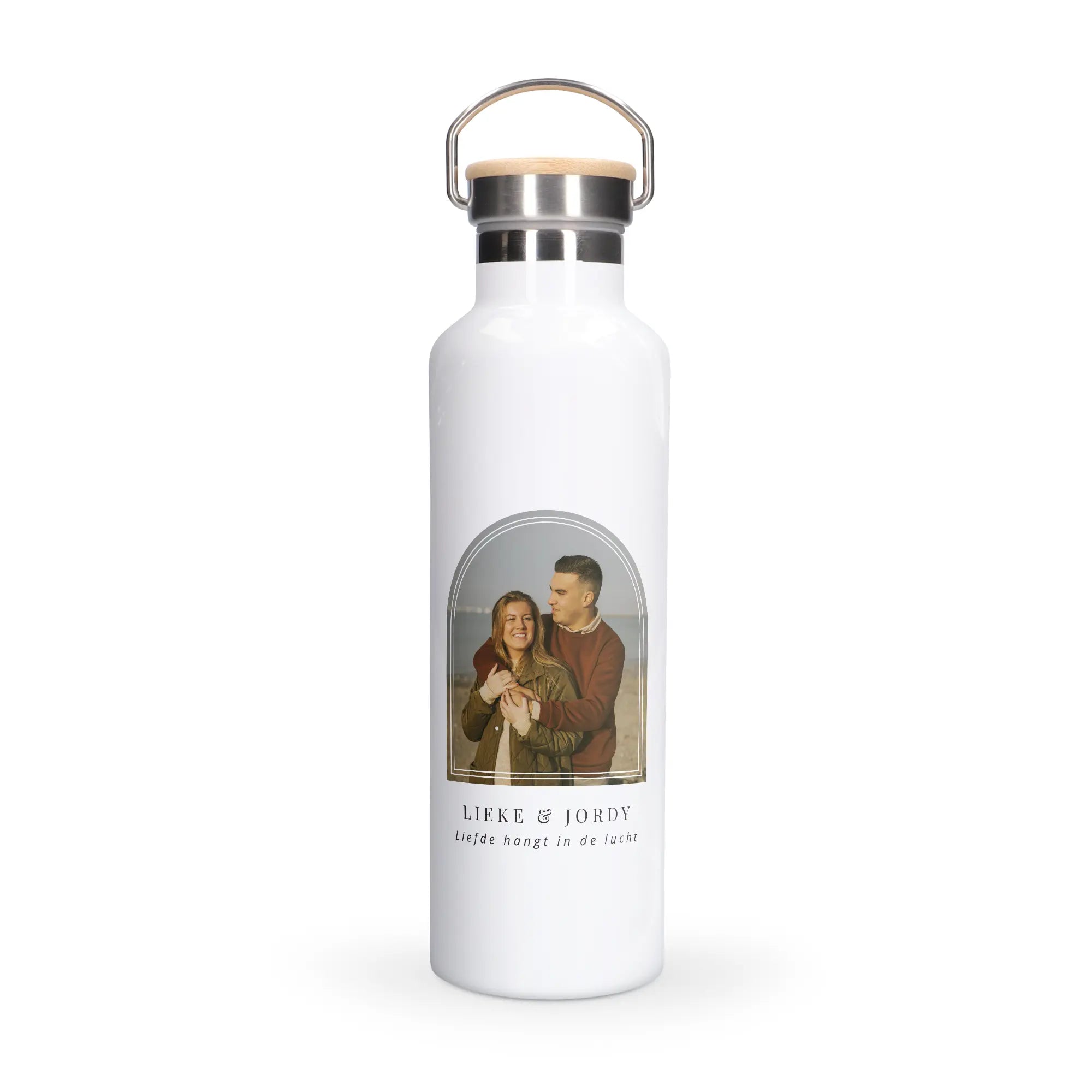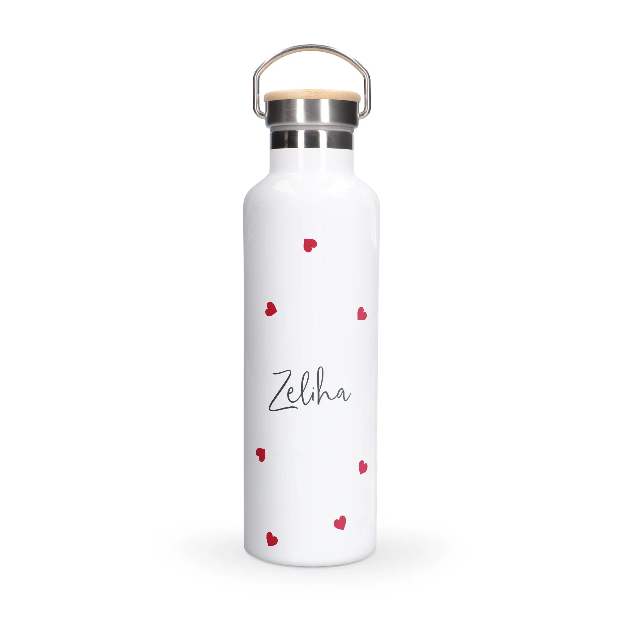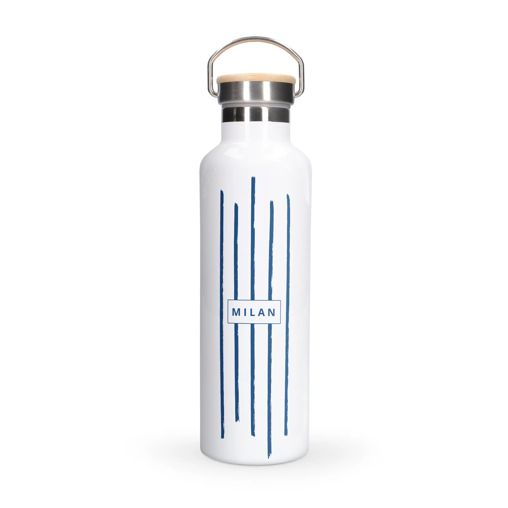 Spersonalizuj butelkę na wodę ze stali nierdzewnej, umieszczając na niej zdjęcie, tekst lub logo według własnego wyboru. Stwórz swoją już teraz!Więcej informacji o personalizowanej butelce na wodę: Materiał: wysokiej jakości stal nierdzewna i aluminium Kolor: biały z bambusową pokrywką Pojemność: 750 ml Personalizacja: zdjęcie, tekst i/lub logo Nadruk: idealny i w pełnym kolorze Termos: chłodzi do 24 godzin, utrzymuje ciepło do 12 godzin Dodatkowo: szczelny i izolowany, zaleca się mycie ręczne Warto wiedzieć: Butelka na wodę ma stylowy, aluminiowy wygląd. Oznacza to, że Twój projekt zostanie nadrukowany bezpośrednio na powierzchni butelki, nadając Twojemu prezentowi stylowy, industrialny wygląd. Oznacza to również, że efekt końcowy może różnić się od tego, co widzisz na ekranie.