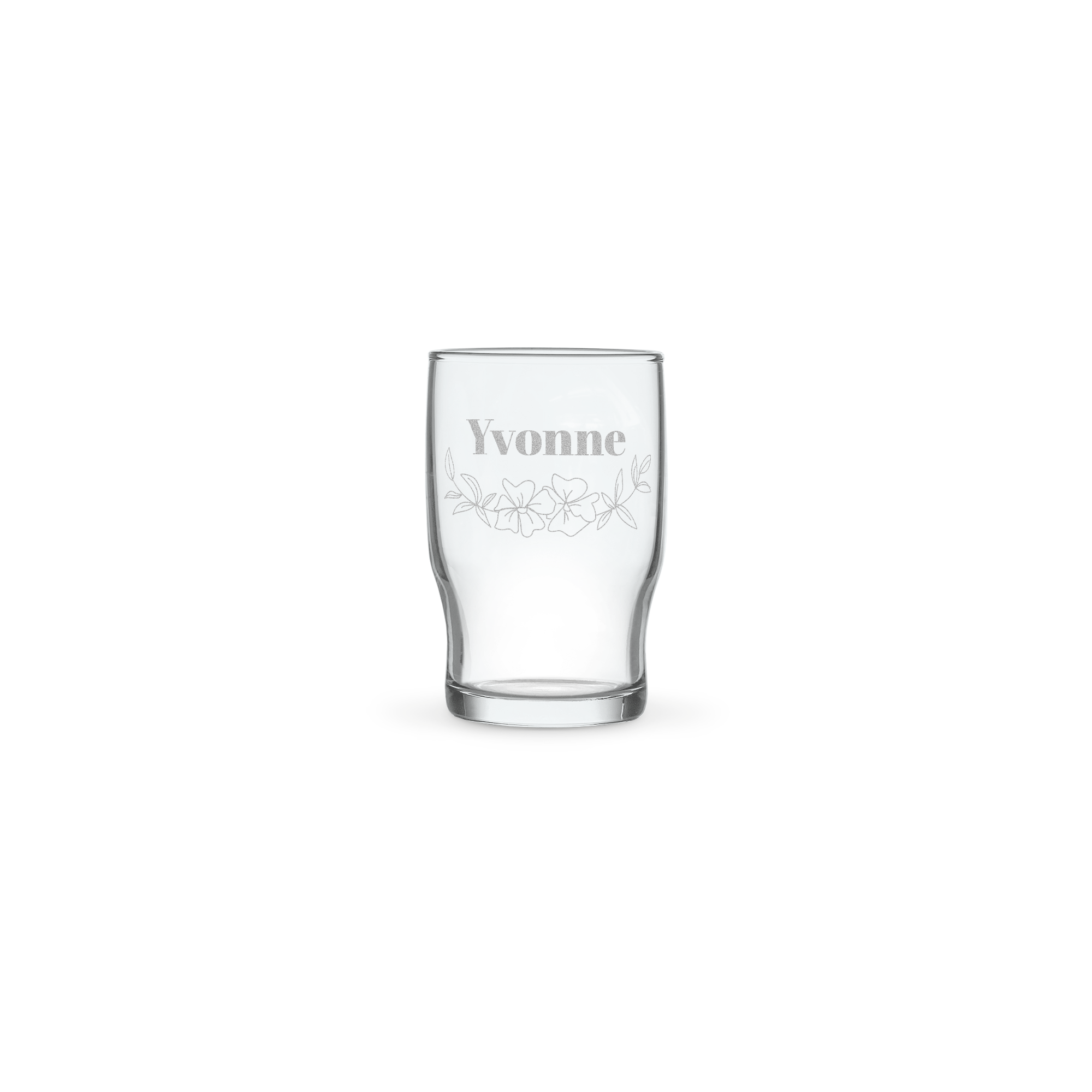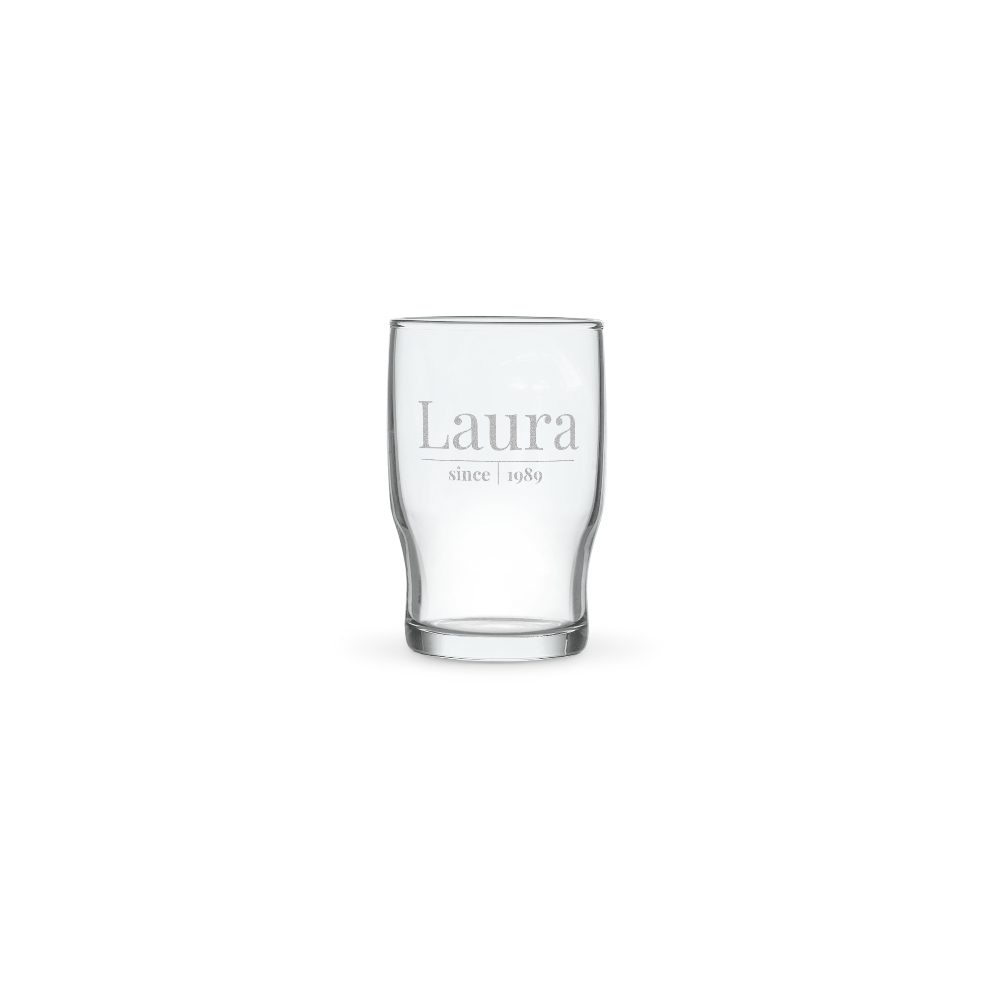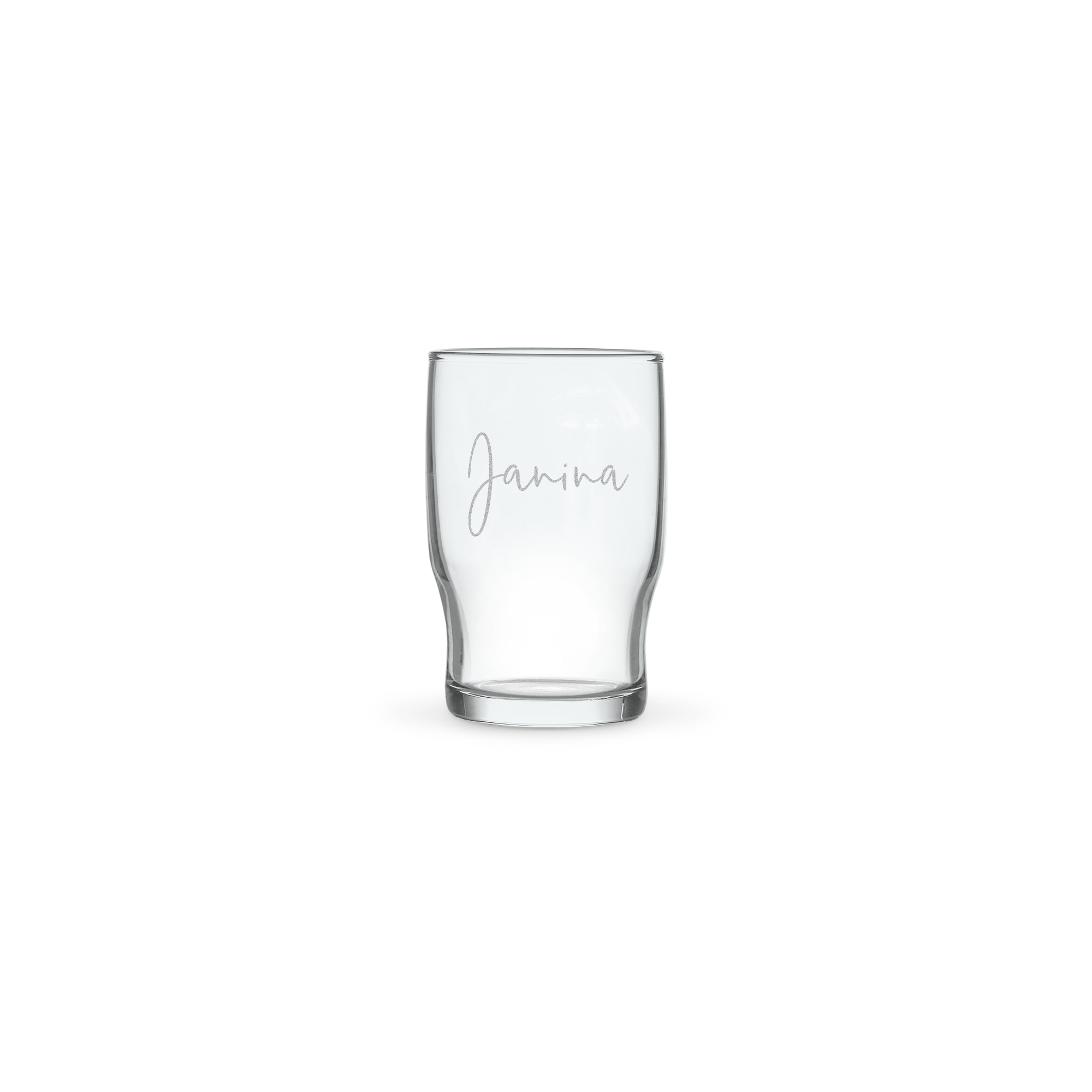 Więcej informacji o spersonalizowanej szklance do wody:Średnica: 6,3 cm Wysokość: 9,5 cm Zawartość: 22 cl Personalizacja: imieniem i/lub napisem Grawerunek: biały, efekt końcowy może różnić się od podglądu Dodatkowo: Można myć w zmywarce