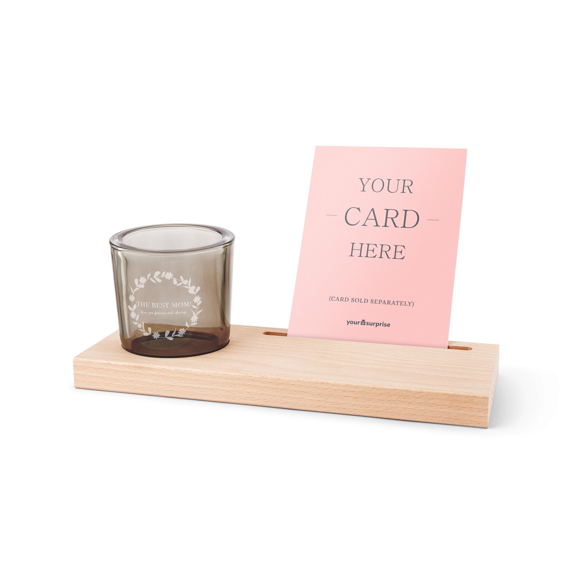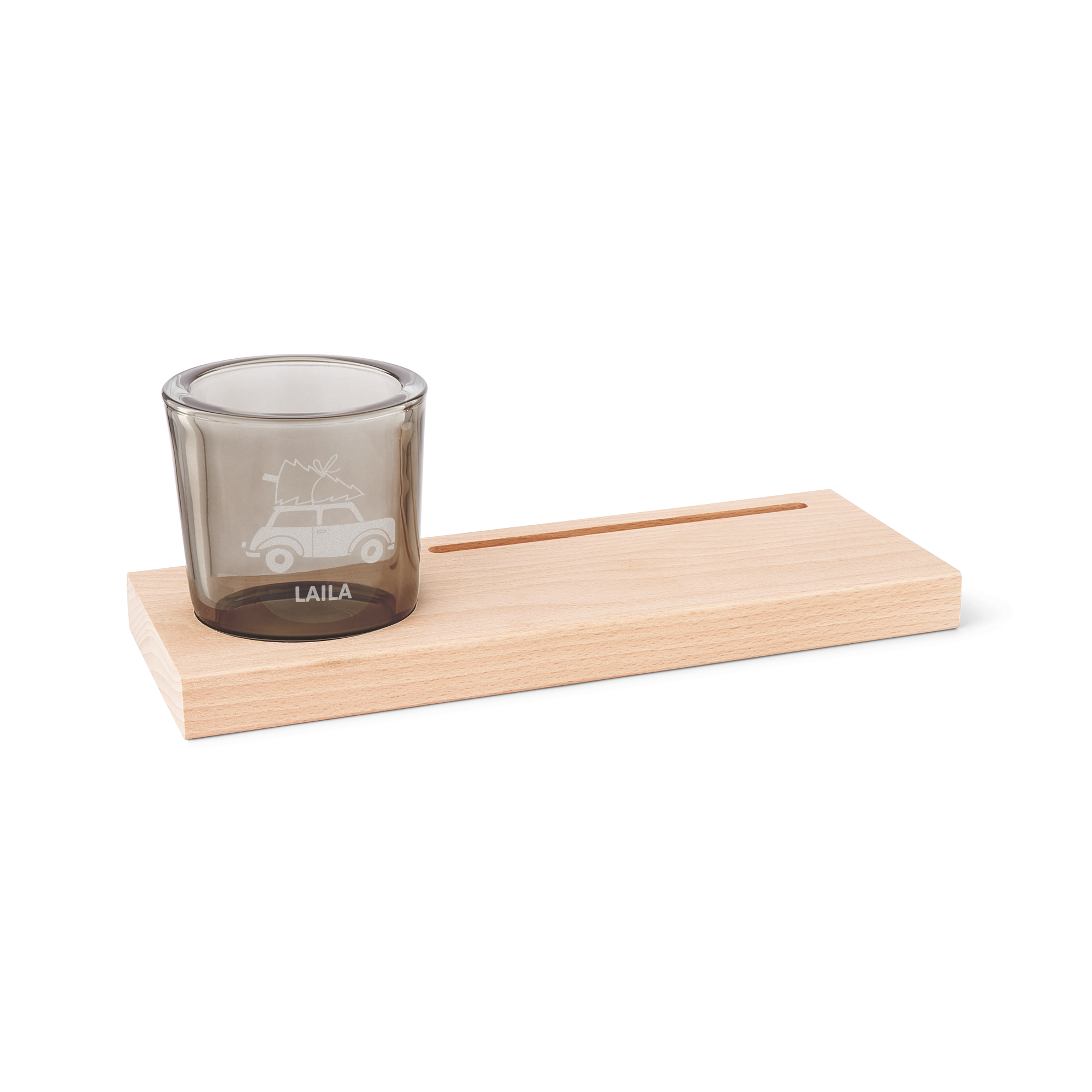 Drewniany posiadacz kart z spersonalizowaną grawerowaną świecą