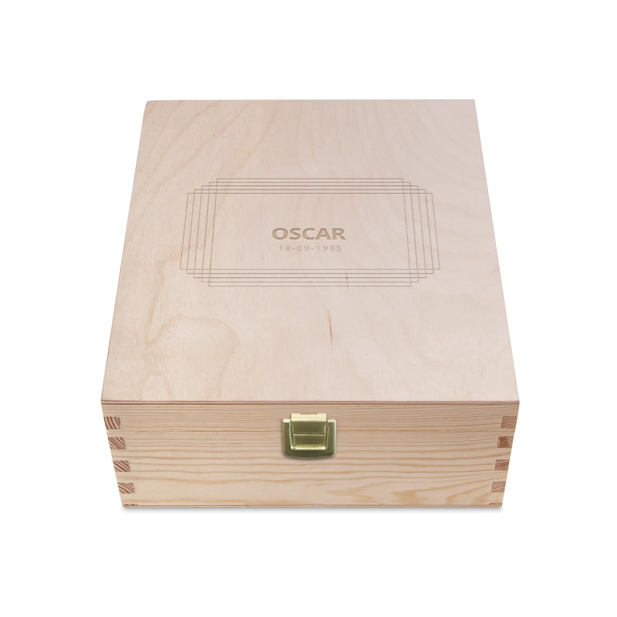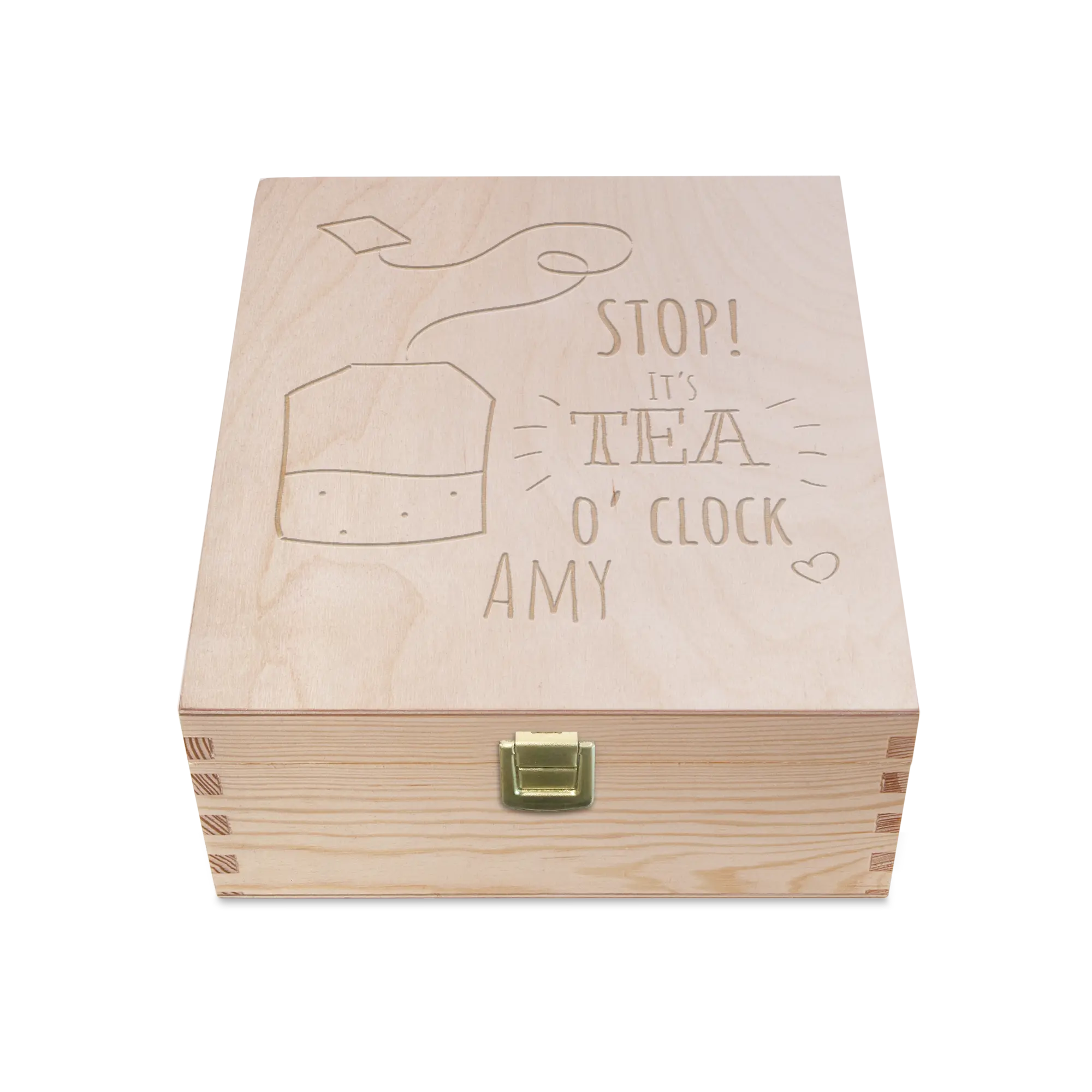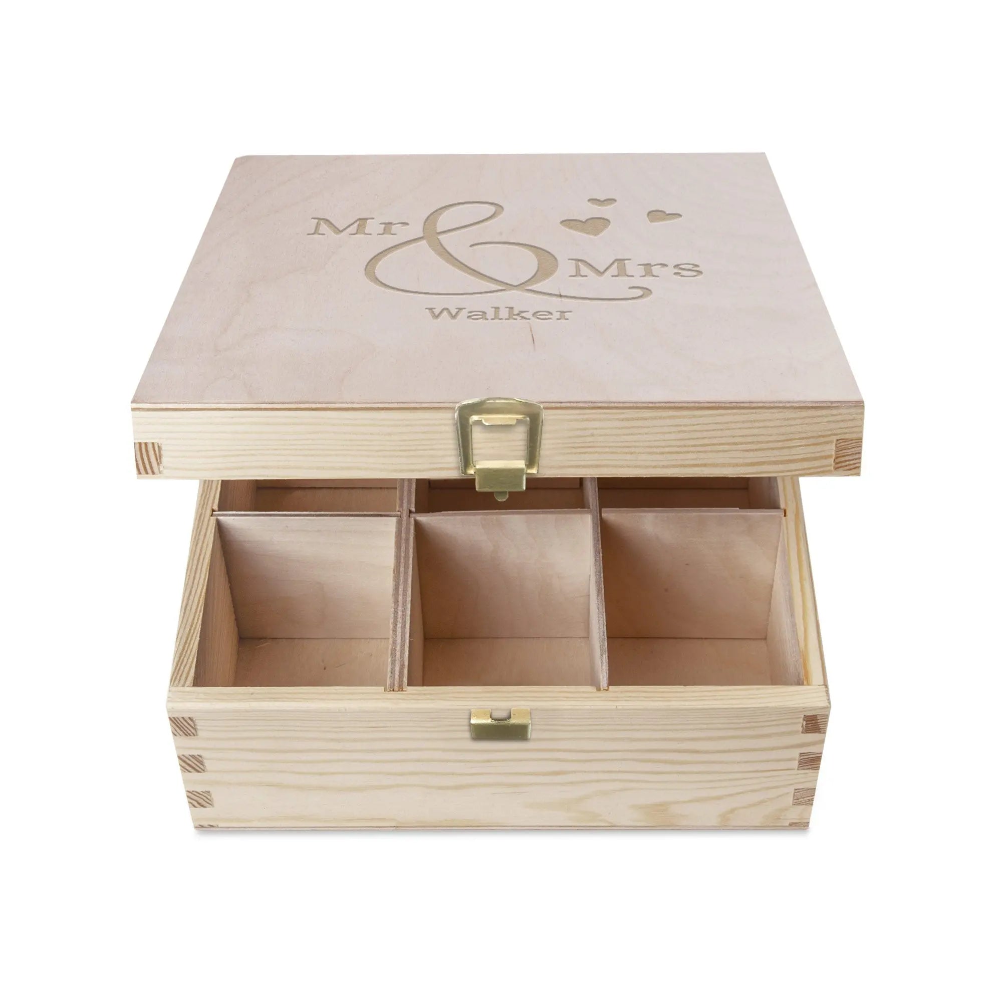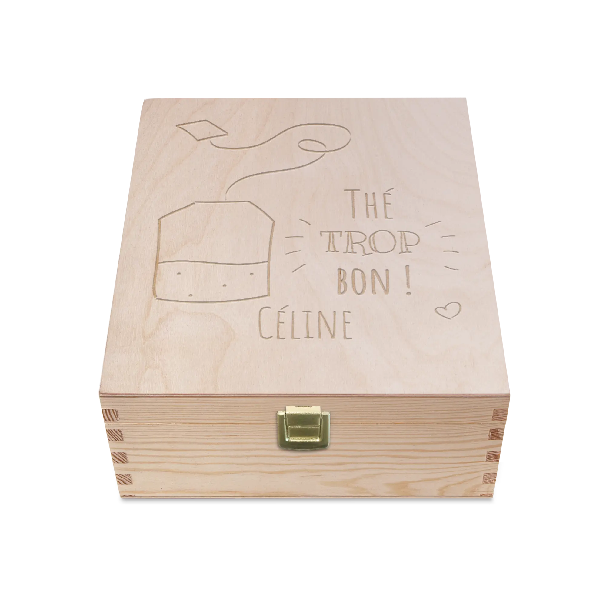 Najlepszy prezent dla Twojego ulubionego miłośnika herbaty. Luksusowe drewniane pudełko na herbatę z grawerowaną szklanką. Naprawdę osobiste, z imieniem lub wybranym tekstem!Więcej informacji o drewnianym pudełku na herbatę z imieniem:Materiał: piękne europejskie drewno bukoweWymiary: 20,8 x 24 x 9,8 cmPrzegródki: 9Personalizacja: imieniem lub tekstemMetoda personalizacji: wysokiej jakości grawer laserowyKolor grawerunku: brązowy (kolor drewna)Dodatkowo: Drewno to produkt naturalny, co oznacza, że Twój prezent może nieznacznie różnić się od tych przedstawionych na stronie internetowej.Warto wiedzieć: Pudełko na herbatę ma kilka wymiennych przegródek. Dzięki temu możesz umieścić w nim na przykład swoje ulubione łyżeczki do herbaty. Jeśli chcesz, aby logo zostało wygrawerowane na wieczku, skontaktuj się z obsługą klienta w celu uzyskania dalszych informacji.