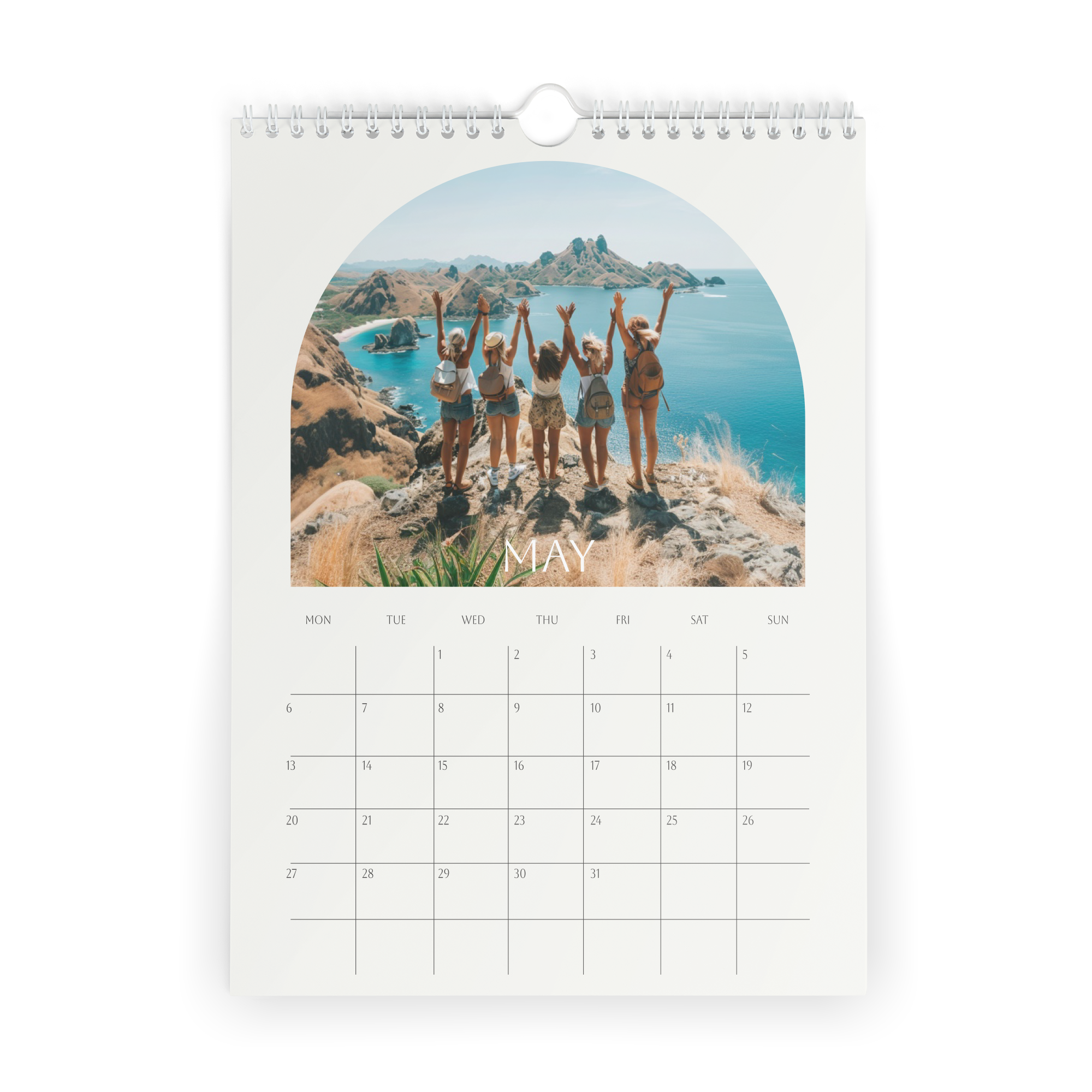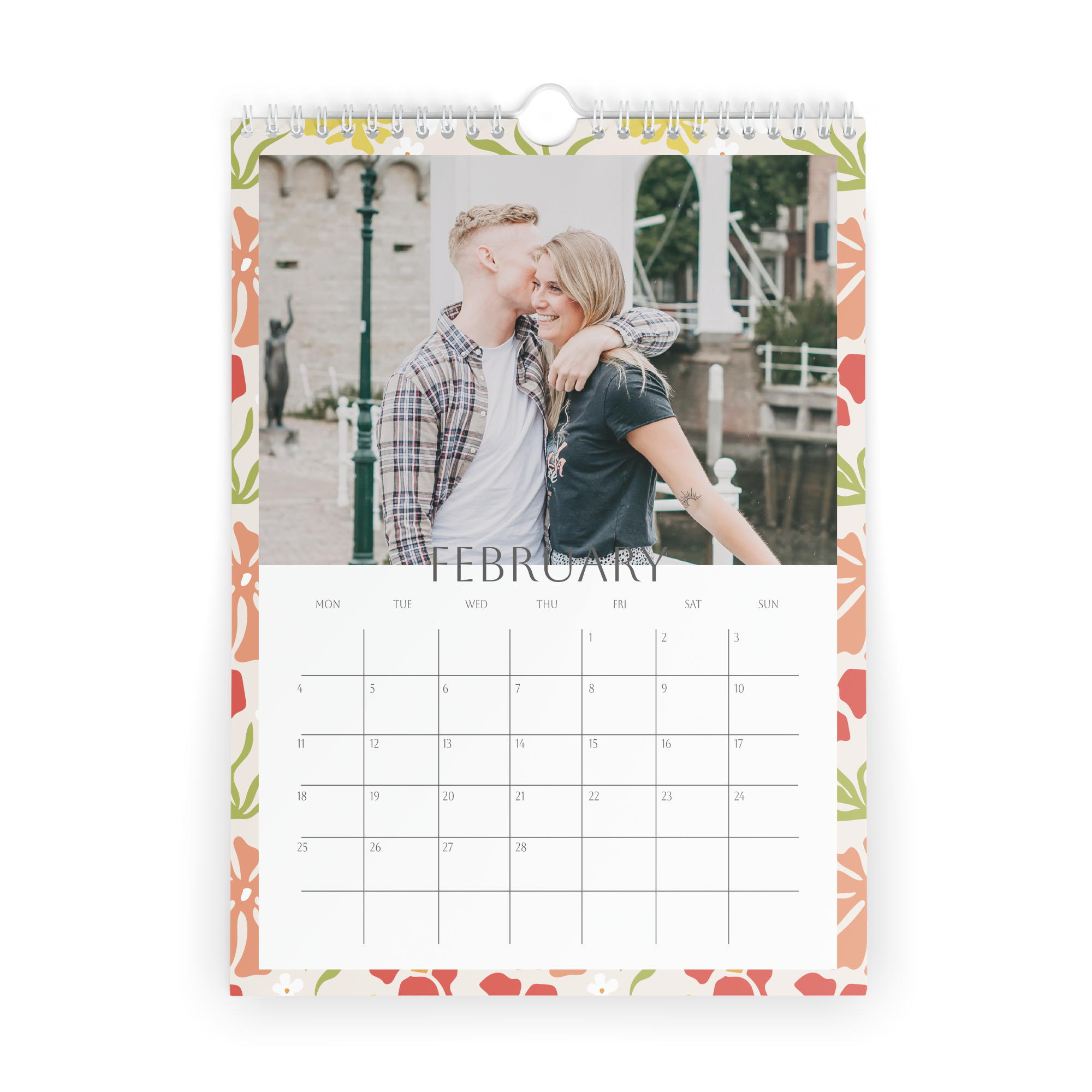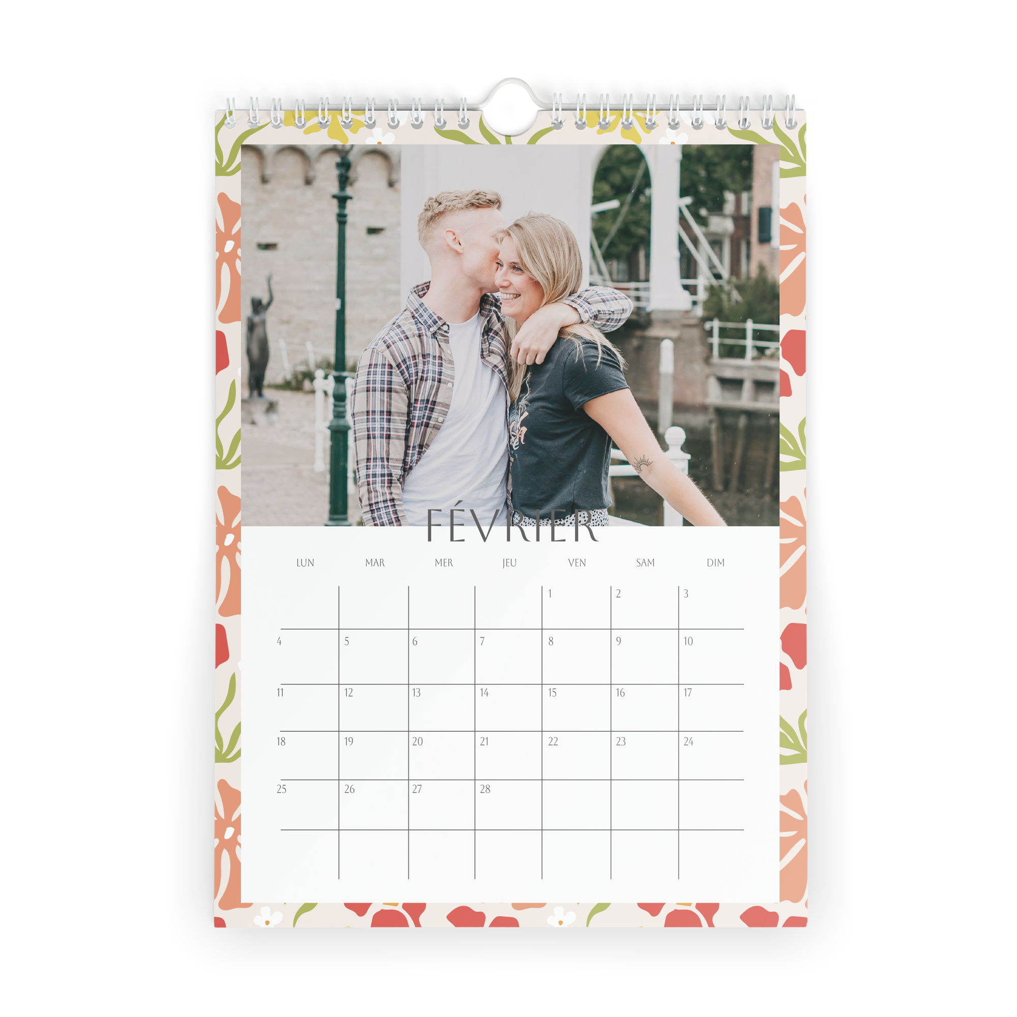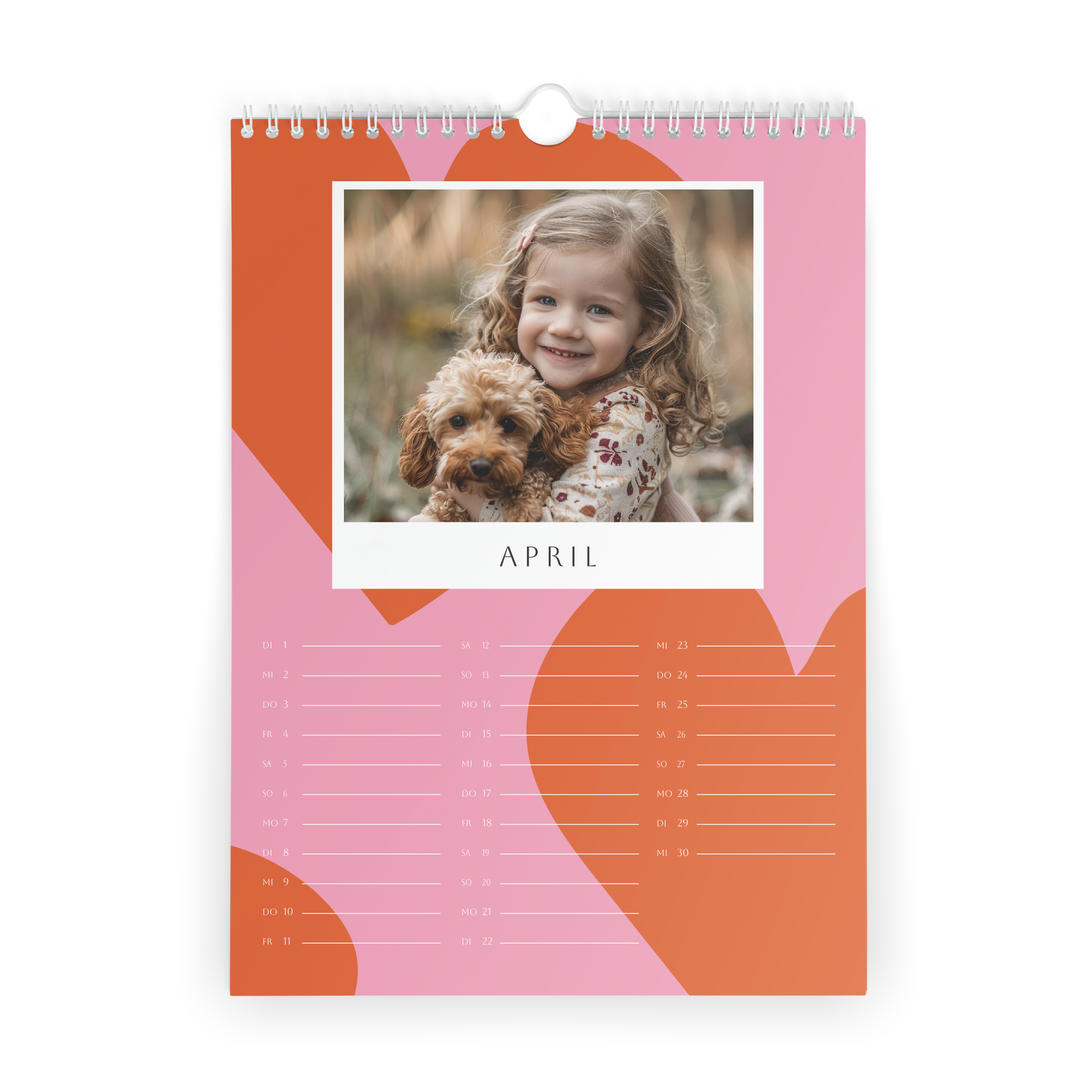 Więcej informacji o kalendarzu na rok 2025: Wymiary: 21,4 x 29,7 cm Papier: 250 gramów Personalizacja: zdjęciem i/lub tekstem Druk: niezwykle ostry i w pełnym kolorze Dodatkowo: spiralne oprawienie z praktycznym haczykiem