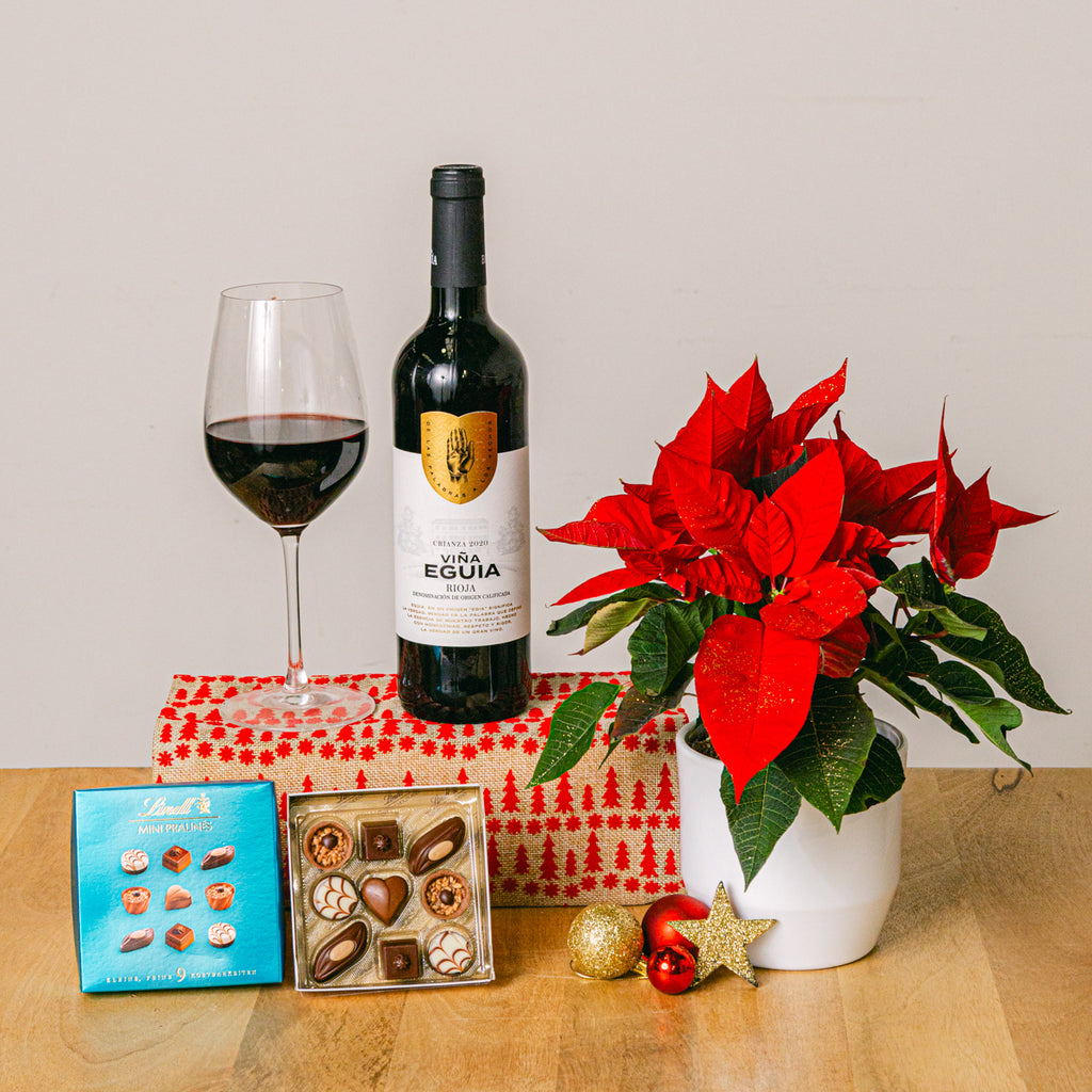 Świąteczna uczta: poinsecja i czerwone wino