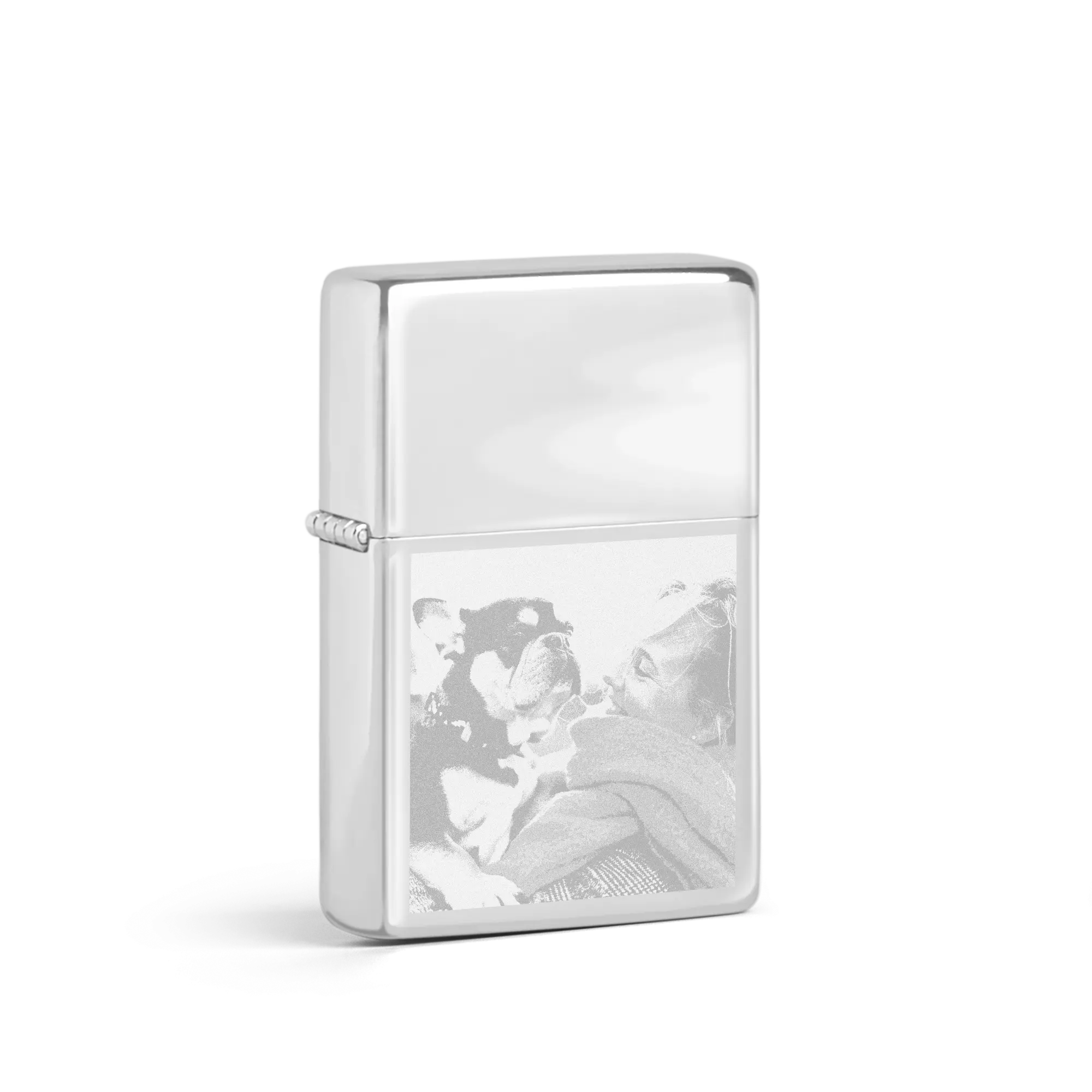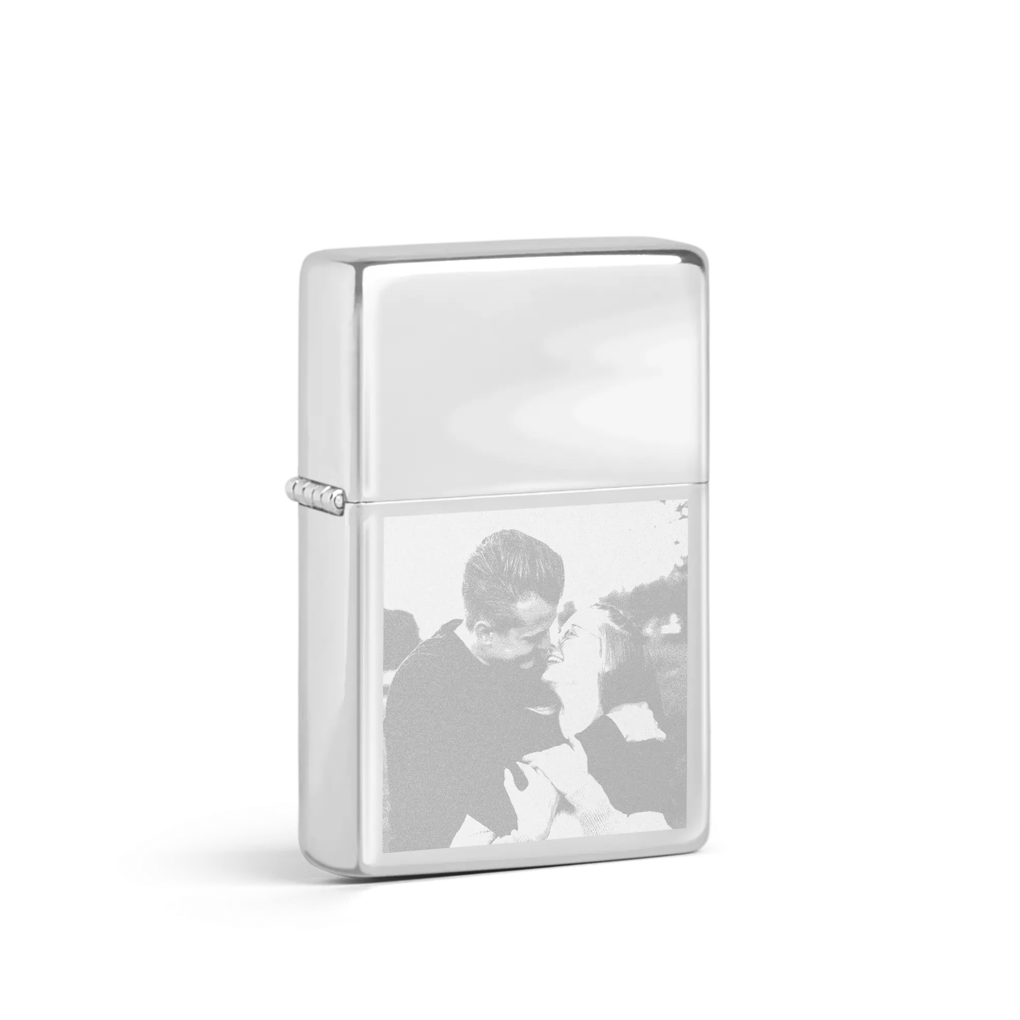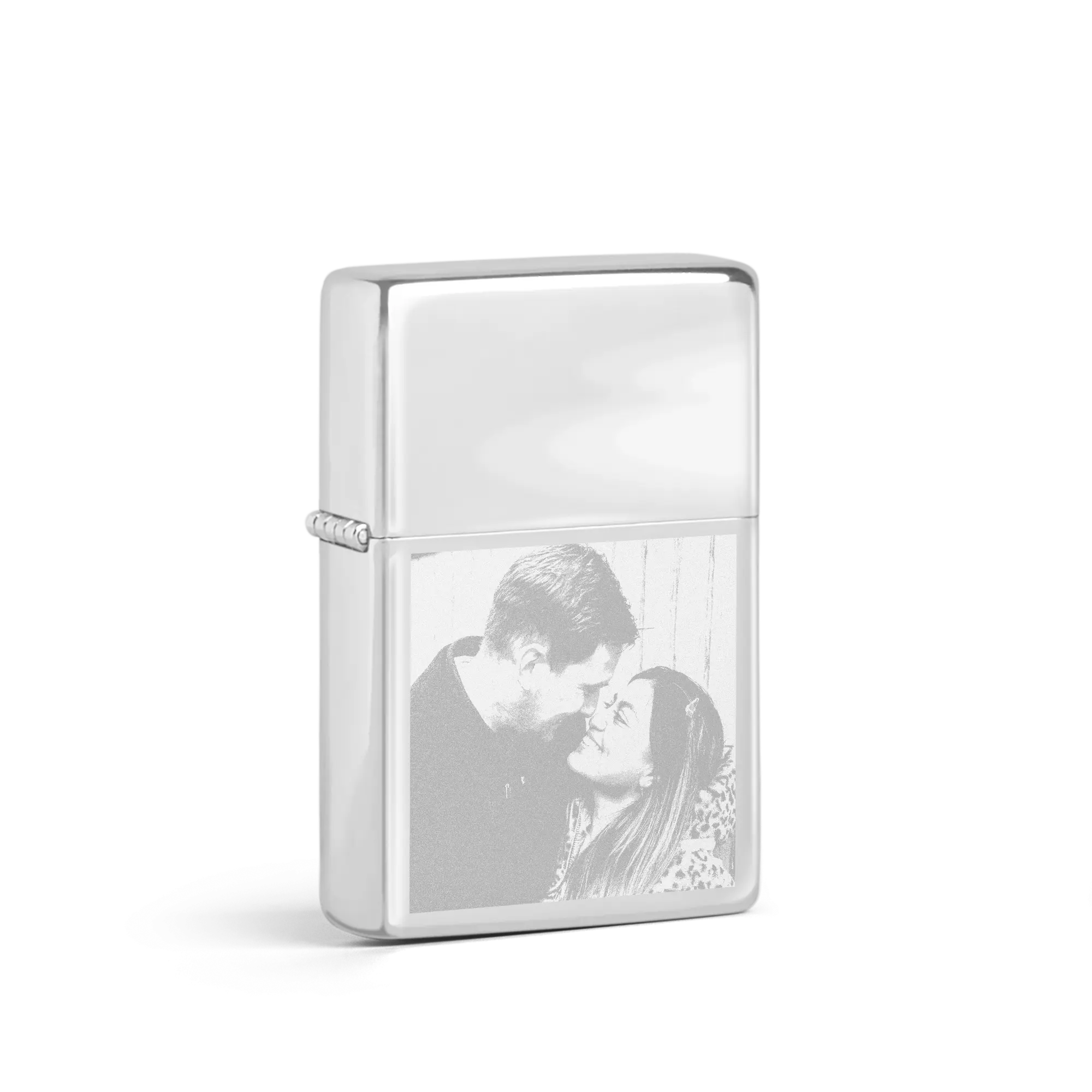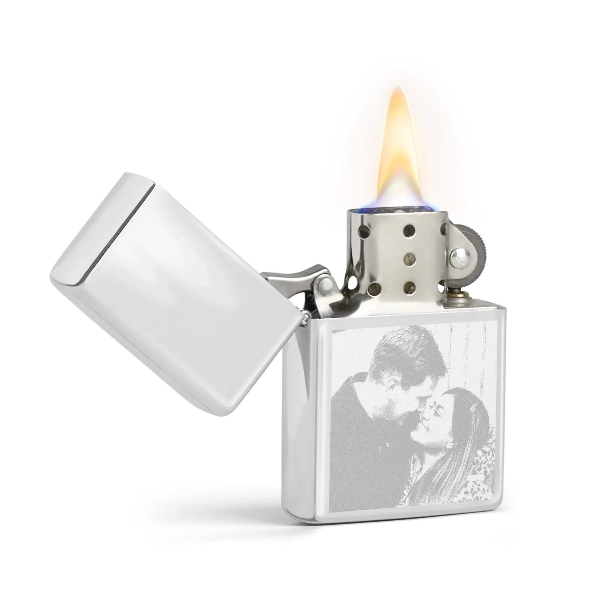 Zapalniczka z wygrawerowanym Twoim ulubionym zdjęciem!Więcej informacji o zapalniczce:Materiał: metalKolor: srebrnyUwaga: zapalniczka jest dostarczana bez płynu do zapalniczek. To, co widzisz wewnątrz zapalniczki, to nie rdza, a miedź. Jest to podstawowy kolor zapalniczki, a tylko zewnętrzna część i część wnętrza jest posrebrzana. W przeciwnym razie benzyna mogłaby skorodować srebro. Miedź jest na to odporna.Dodatkowo: Twój obraz zostanie wygrawerowany, a nie wydrukowany. Dlatego będzie się nieznacznie różnił od obrazu na ekranie. Grawerowanie jest tworzone przez wytrawienie obrazu w powierzchni, a nie drukowanie obrazu na powierzchni. Oznacza to, że grawerowanie jest najlepiej widoczne, gdy patrzy się na nie z przodu, a ze względu na charakter techniki może być mniej widoczne pod innymi kątami. W zestawie znajduje się czarne kartonowe pudełko.