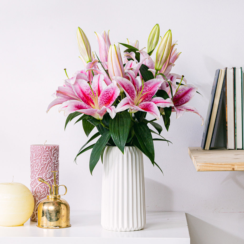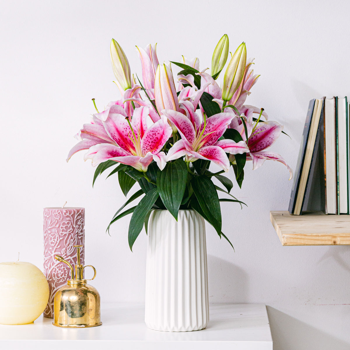 Po przybyciu: Umieść swój bukiet w czystej wazie ze świeżą, letnią wodą natychmiast po dostawie.