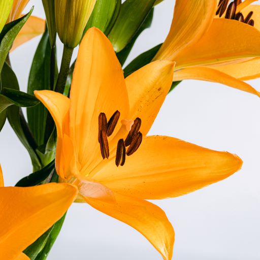 Uczcij każdą wielką chwilę w swoim życiu w gronie najbliższych i w towarzystwie dużych kwiatów pomarańczowego lilium asiatic, którego szerokie płatki mówią o miłości, zaangażowaniu i intensywności, z jaką podchodzimy do każdego zadania. Idealny do... Uznania za podjęty wysiłek.