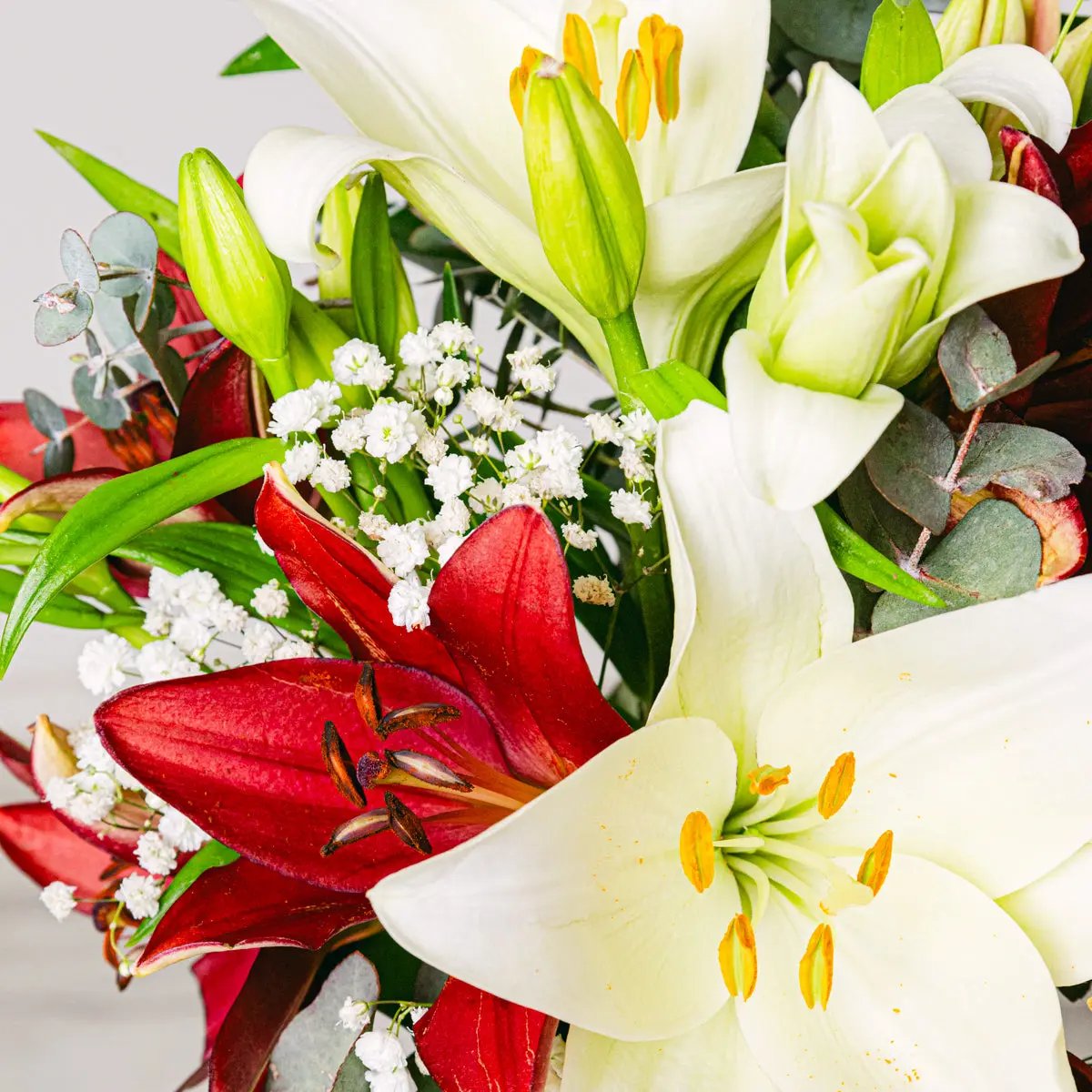 Arcydzieło wyrafinowania i pasji, ujęte w każdym delikatnym płatku naszych premium czerwonych lilii. Te lilie, starannie wybierane ze względu na ich świeżość i niezrównaną jakość, są symbolem głębokiej miłości i szczerego podziwu, zdolne do przekazywania najintensywniejszych emocji swoją żywą karmazynową tonacją.