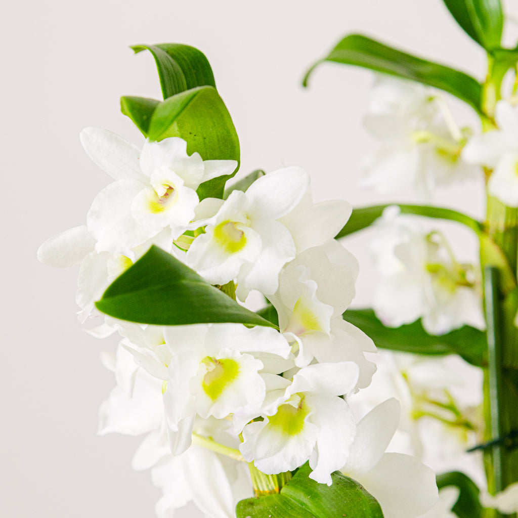 Dendrobium należy do rodziny storczykowatych, a jego nazwa oznacza "żyjący na drzewach". Charakterystycznie rośnie w górę, a jego wdzięczne płatki nadają mu urody i elegancji. Mówi się, że ma zdolność odpędzania negatywnych zjawisk, dbając o świeżość otoczenia, a jego delikatne, białe kwiaty wyrażają szacunek i pokorę.