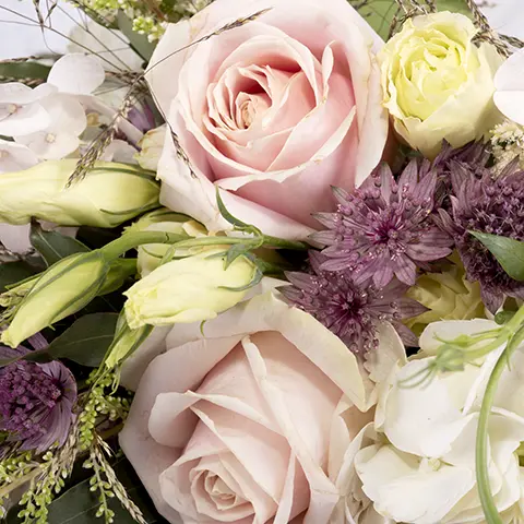 Odkryj delikatność i piękno natury wybrane specjalnie dla Ciebie w tym pięknym bukiecie świeżych kwiatów. Delikatne róże przeplatane białą hortensją tworzą wykwintną, jedwabistą, gładką bazę, na której kołysze się reszta kompozycji. Kalie dodają odrobinę magii dzięki egzotycznym spiralnym kwiatom, a przetacznik dodaje kompozycji nut siły, męstwa i wytrwałości. Wyślij bukiet przepełniony dobrymi doznaniami dzięki tej niezwykle eleganckiej opcji VIP.